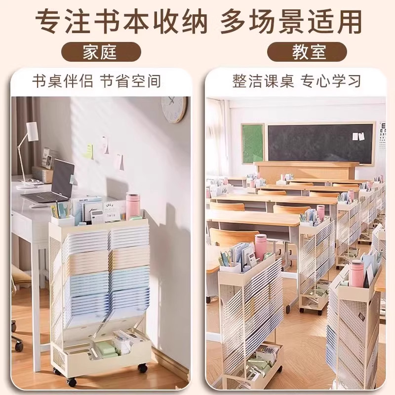 学习桌桌边置物架旁铁艺可移动书本学习装书收纳箱金属可移动书架带轮款初中生高中生装书收纳箱教室用书