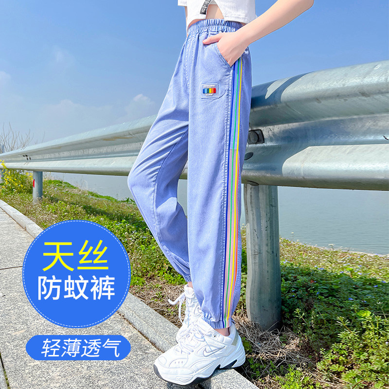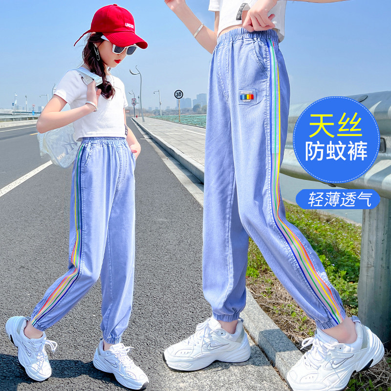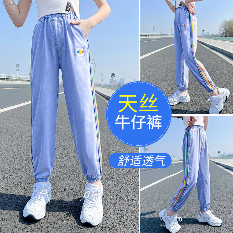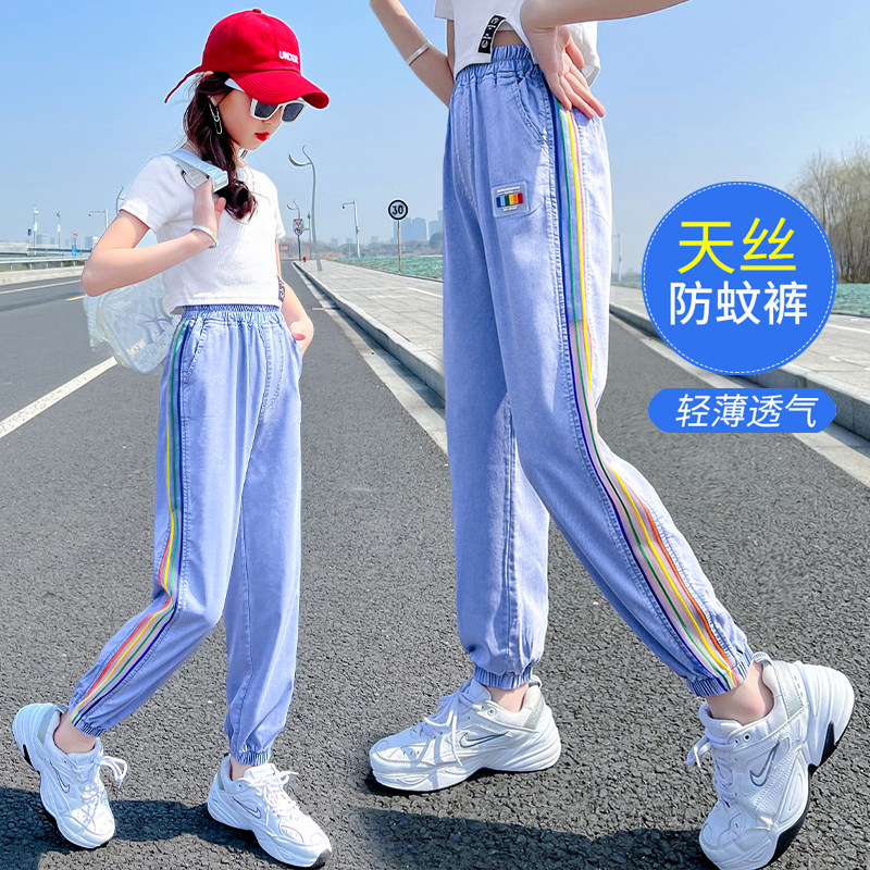 女童裤子夏装洋气宽松儿童中大童防蚊韩版束脚冰丝夏款天丝牛仔裤
