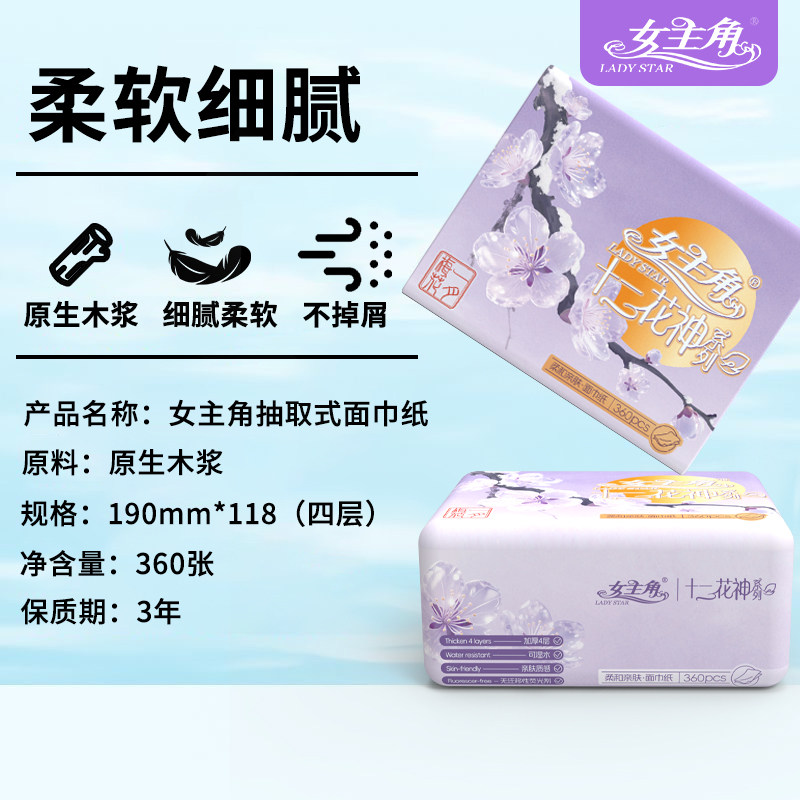 女主角360张4层抽纸卫生纸巾餐巾纸抽家用擦手面巾纸整箱大尺寸