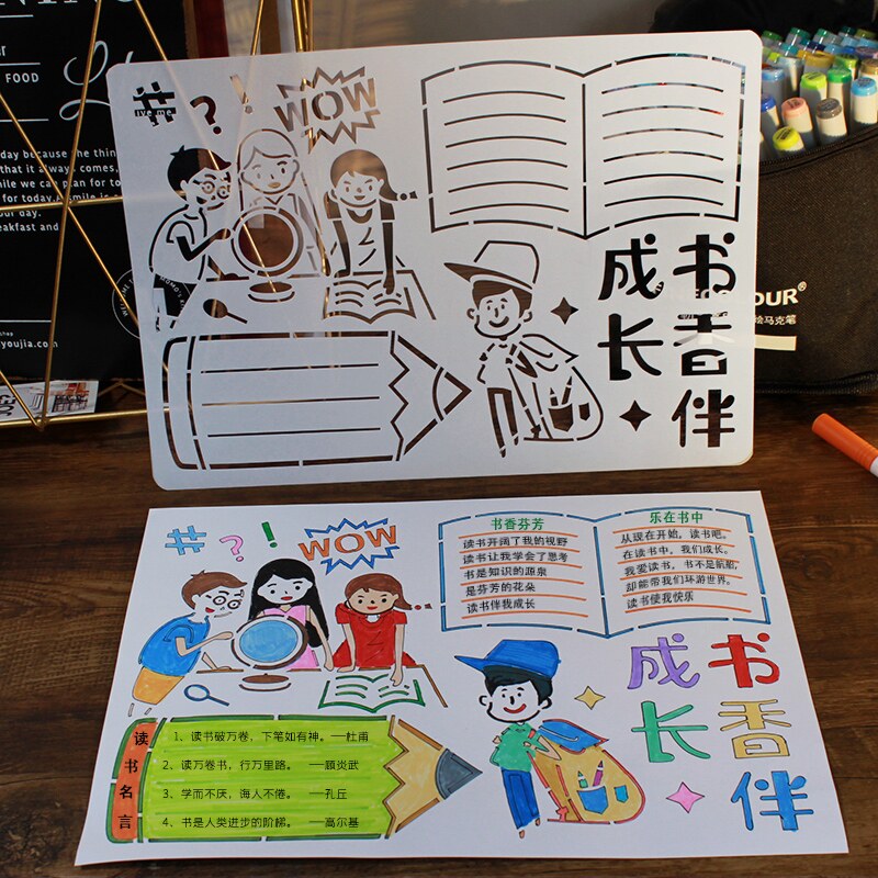 读书小报手抄报模板好书推荐我爱阅读绘画小报8K小学生画画神器A4