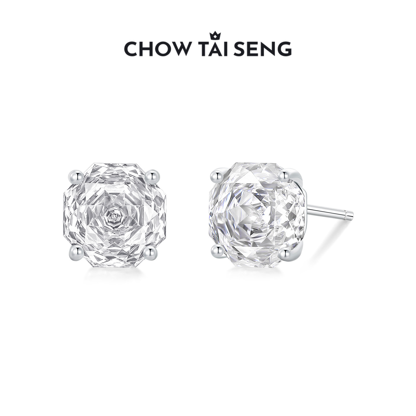 周大生玫瑰星云耳钉女纯银S925轻奢精致耳饰生日礼物送女友情人节