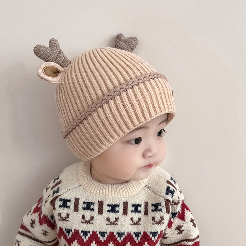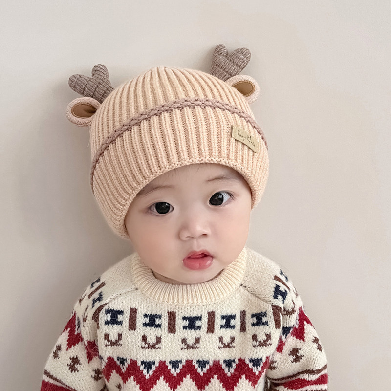 红色宝宝帽子秋冬季婴儿毛线帽儿童帽子2025新款冬款男童女童男孩