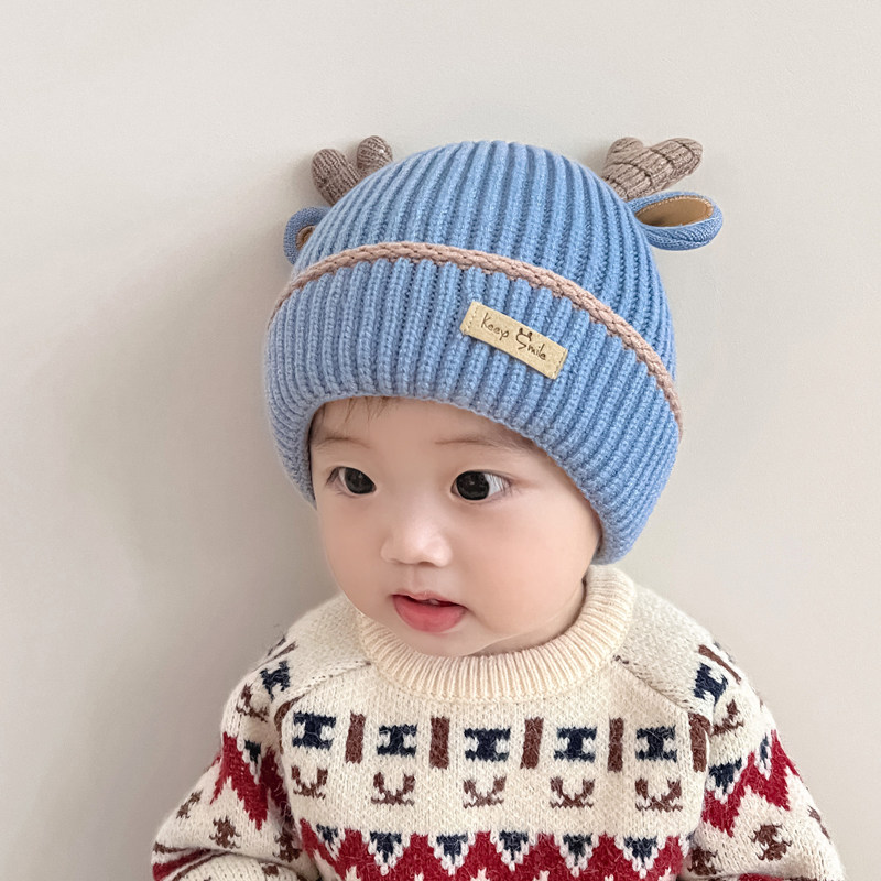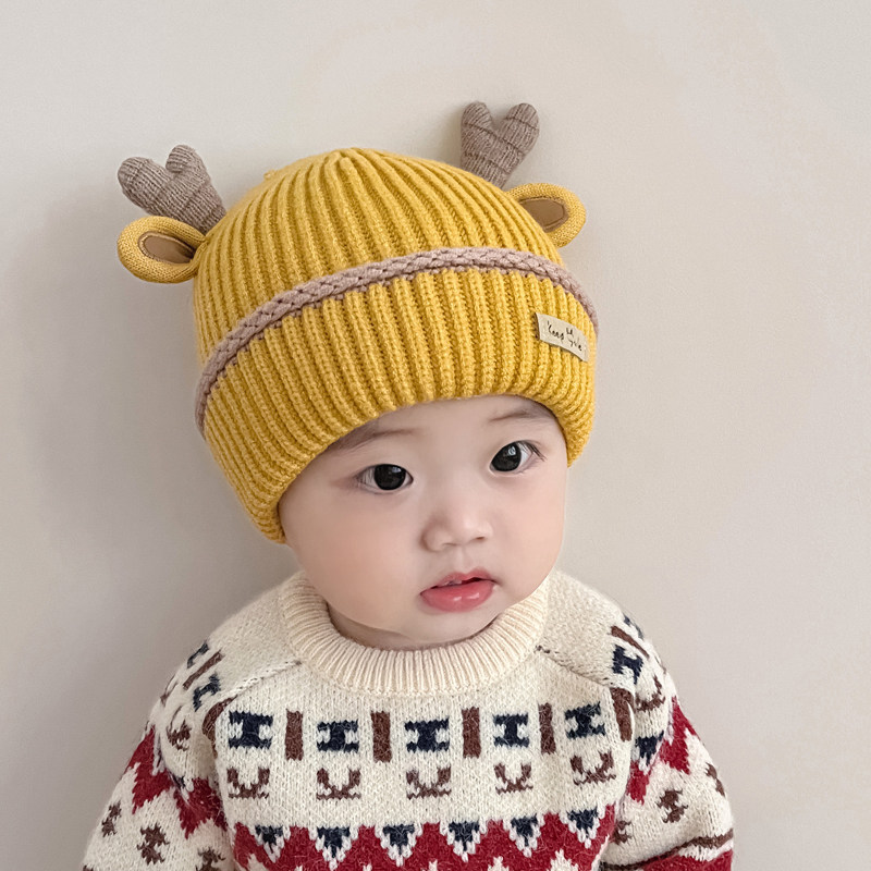 hugz儿童帽子男孩女孩保暖针织毛线帽秋冬季户外护耳防风熊仔帽子