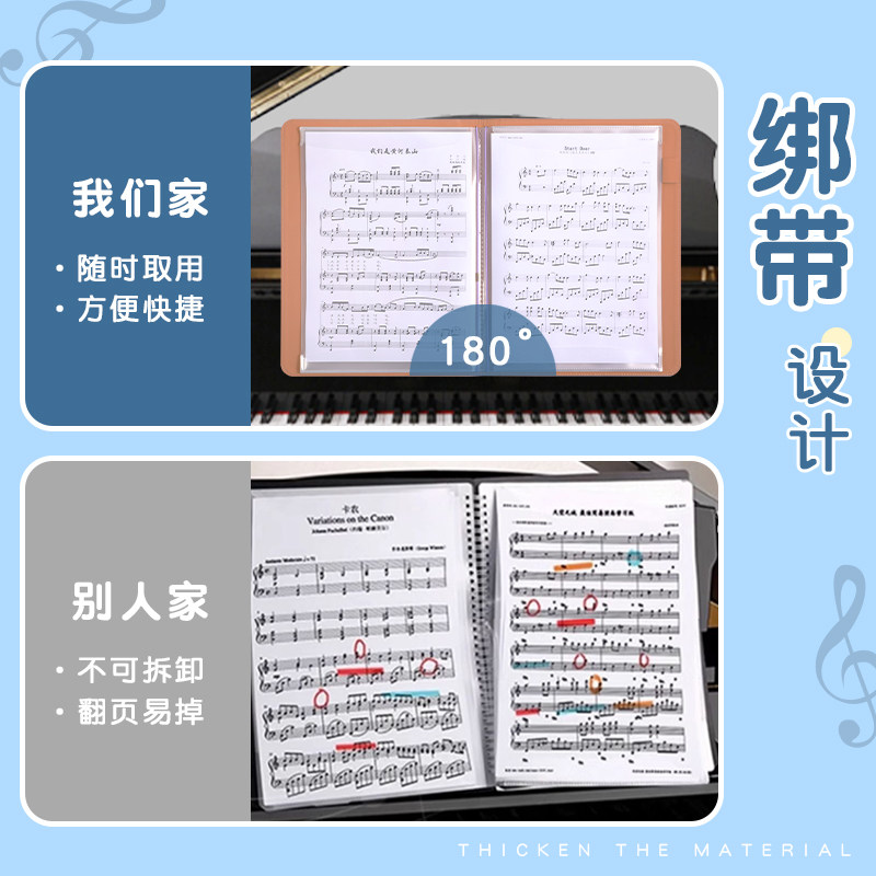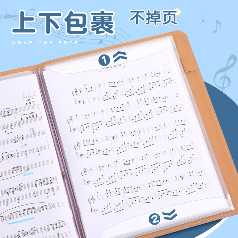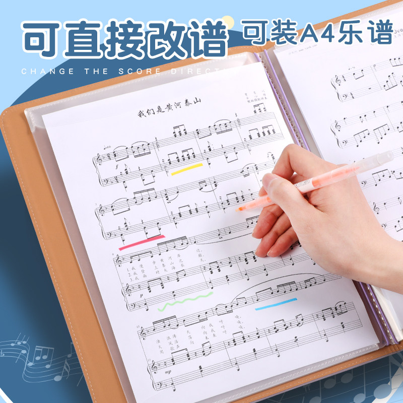 新款乐谱夹不反光可改写乐谱册皮面架子谱册子透明插页活页音乐谱曲展开收纳册肤感乐谱夹改谱册A4钢琴谱夹