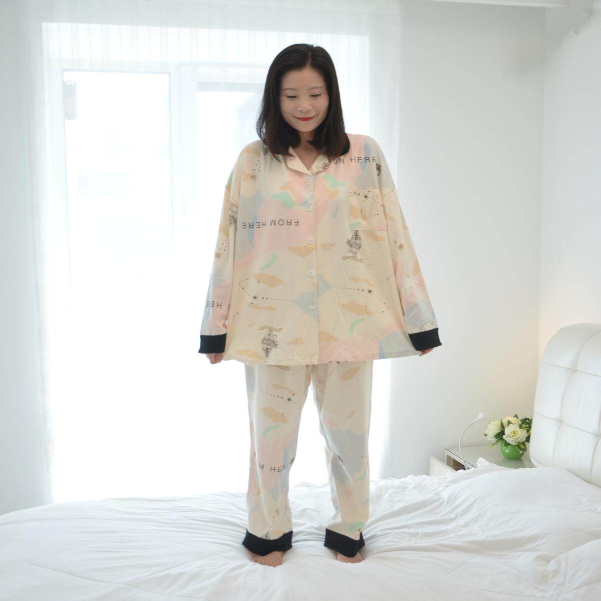 【清仓价】春长袖睡衣女双面舒棉绒开衫家居服套装大码长裤可外穿
