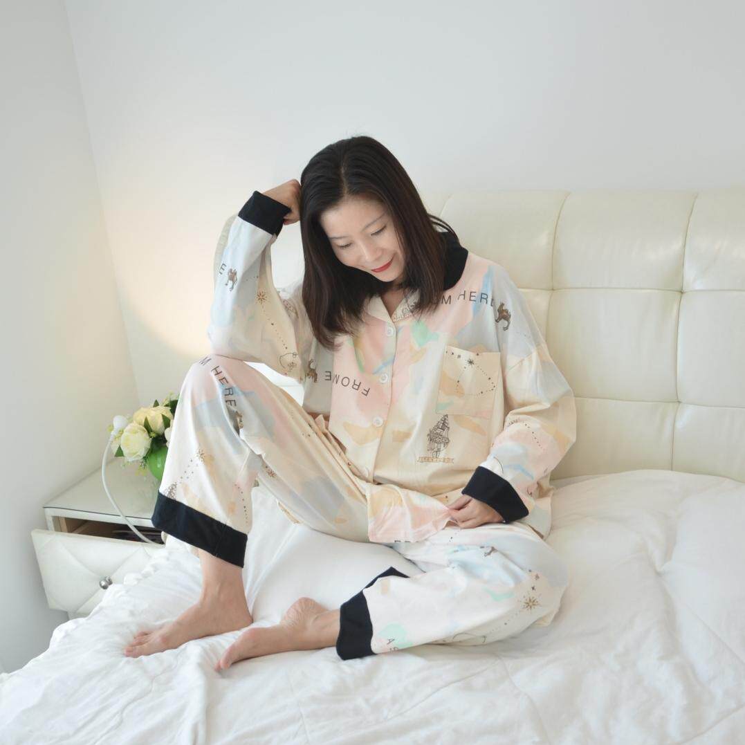 浪莎睡衣女春秋款纯棉长袖2025年新款秋冬大码薄款宽松开衫家居服