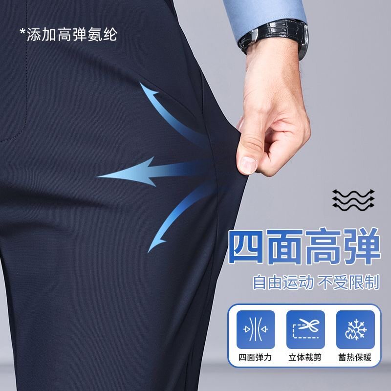 罗蒙加绒加厚男士休闲裤商务休闲秋冬季新款弹力直筒西裤秋冬款