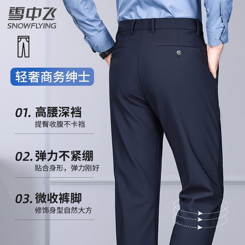 雪中飞爸爸秋装直筒休闲裤夏季新款弹力透气中年男士高腰西裤男装