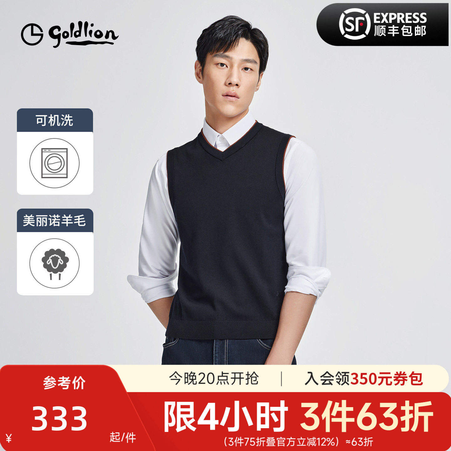【100%羊毛背心】金利来秋冬可机洗毛织马甲背心毛衣V领针织衫男