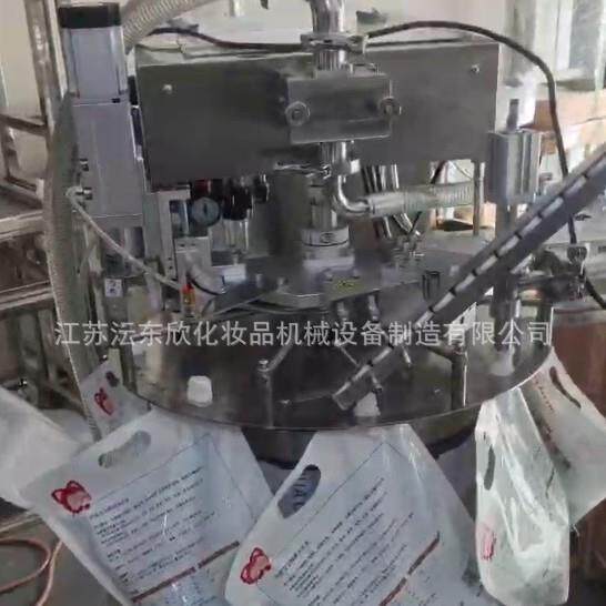 桌面转盘式自动灌装旋盖机自立吸嘴袋填充机洗衣液饮料牛奶灌装机
