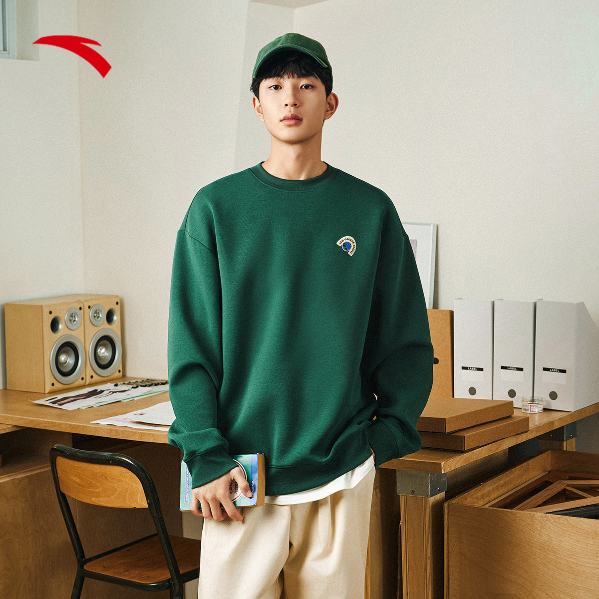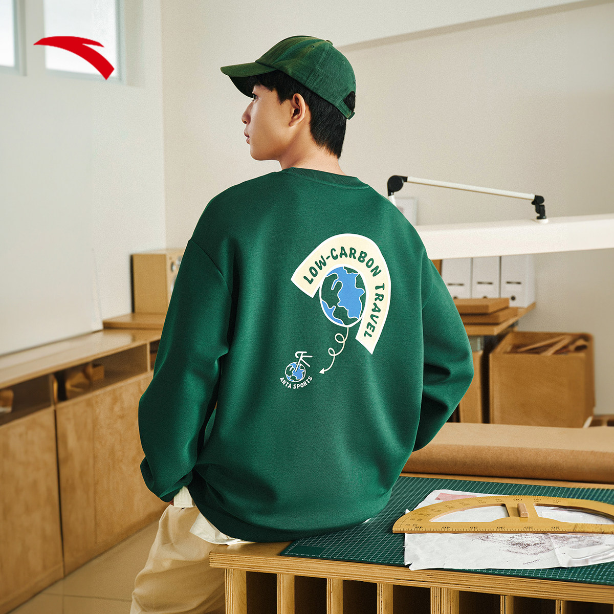 安踏绿色星球丨宽松套头卫衣男秋冬季趣味印花长袖休闲运动上衣