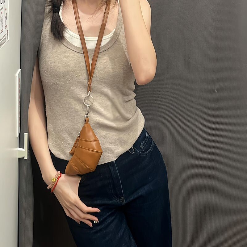可颂牛角包2025迷你小众复古钥匙包口红耳机包挂脖零钱包银色黑色