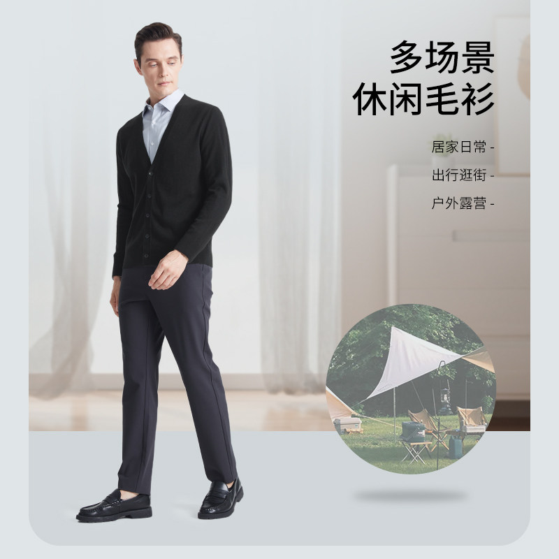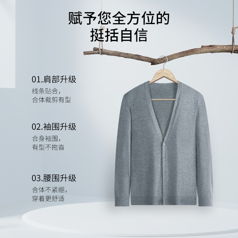 SHANSHAN杉杉商务通勤V领毛衣男士秋冬新款休闲针织开衫男款外套