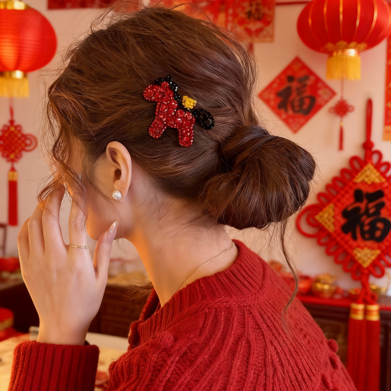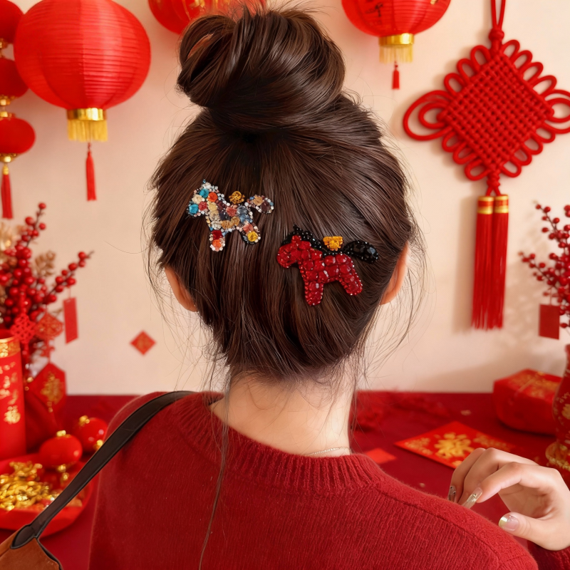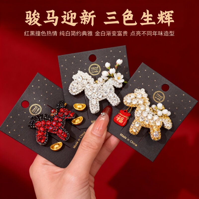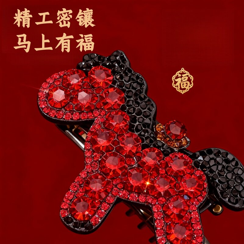 2026新年马上有钱满钻小马发夹高级感前额刘海侧边夹发饰水钻马年