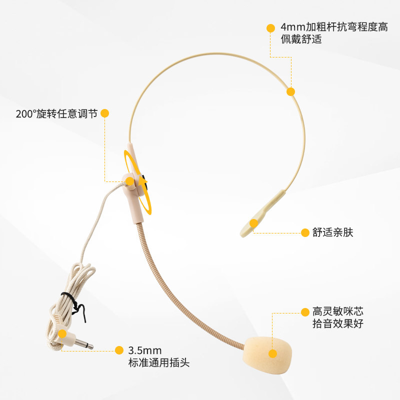 肤色挂劲耳麦小蜜蜂挂脖式教师专用扩音器有线麦克风上课通用话筒