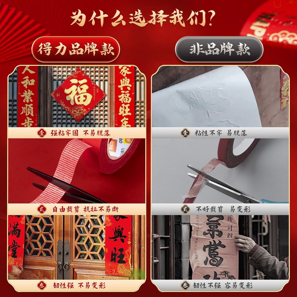 得力婚庆专用网格双面胶不留痕高粘度门对强力固定贴粘地毯防水透明隐型墙面耐高温地板地垫革布基胶带免打孔
