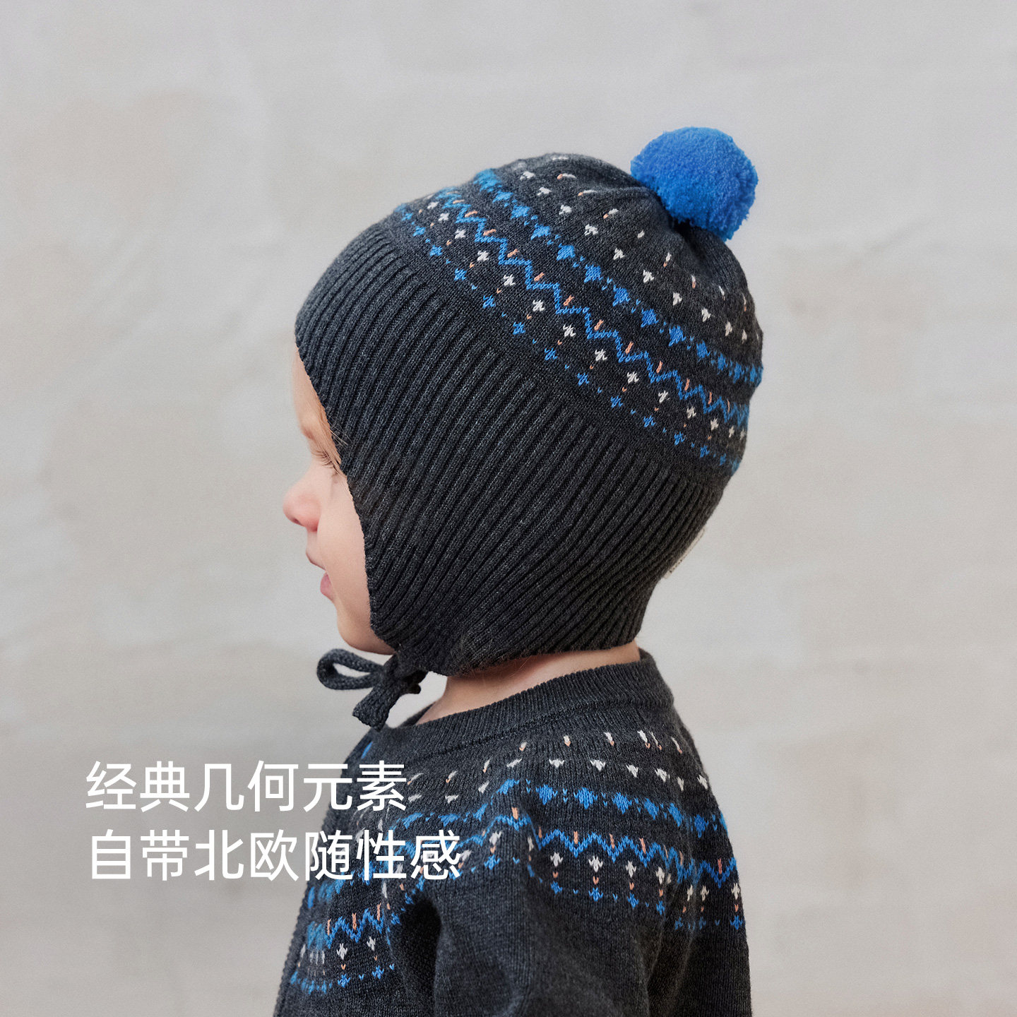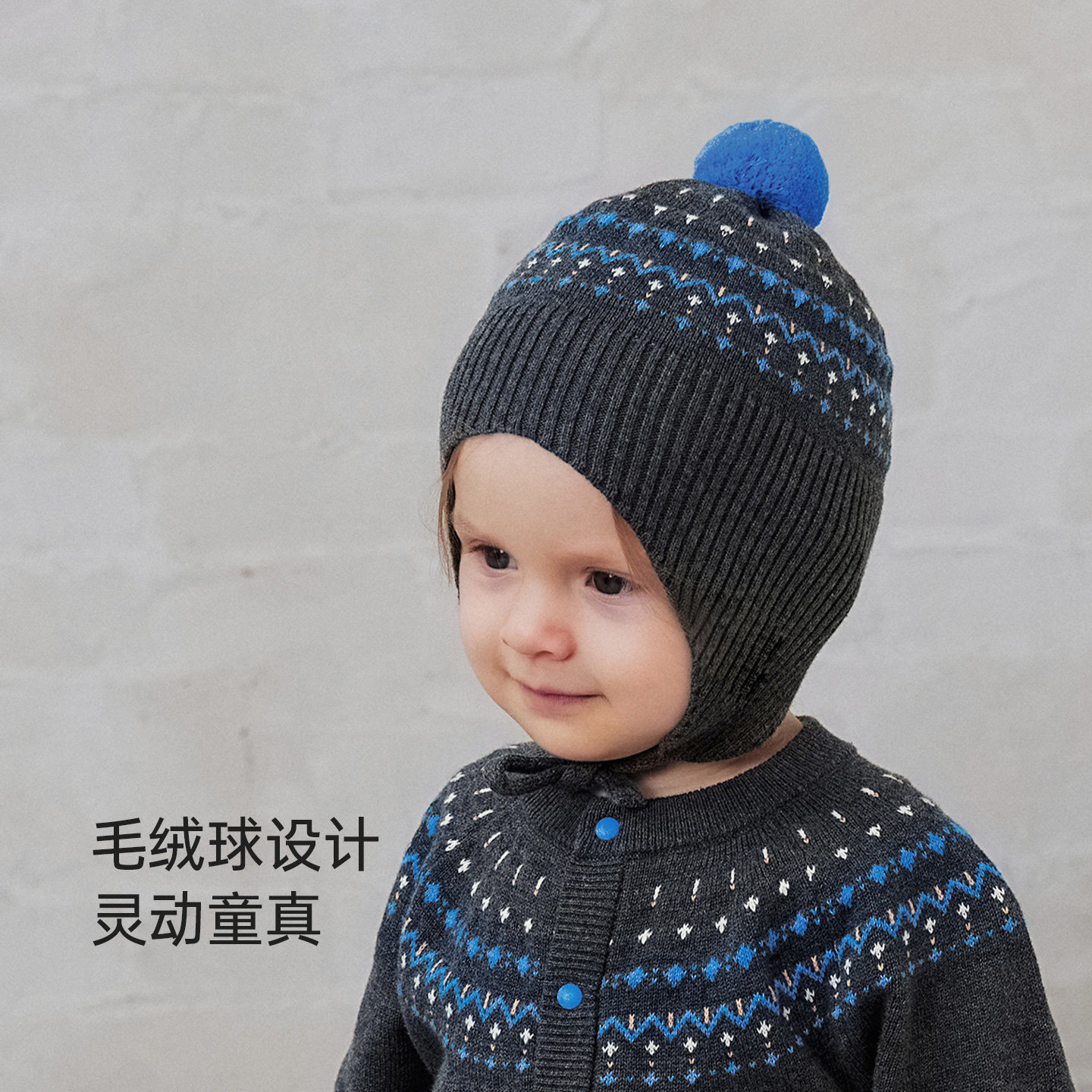 hugz儿童帽子男孩女孩保暖针织毛线帽秋冬季户外护耳防风熊仔帽子