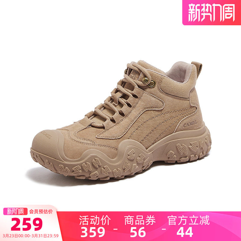 骆驼女鞋2026春季新款丑萌户外马丁靴女款厚底登山鞋耐磨工装靴子