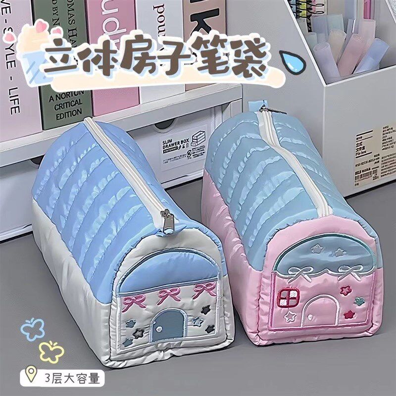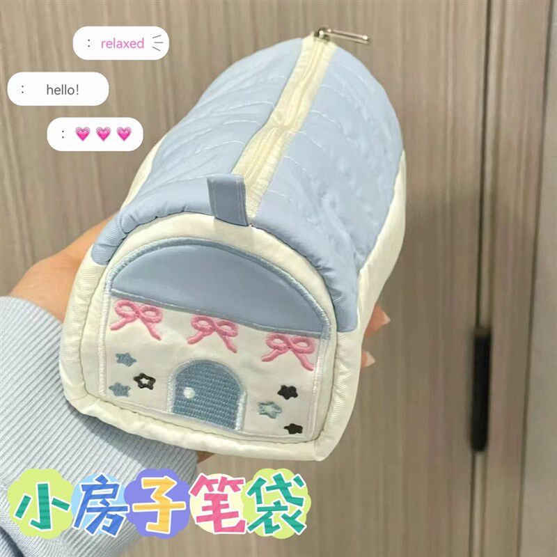 学区房笔袋高颜值小房子小清新刺绣款可爱大容量文具盒收纳笔袋