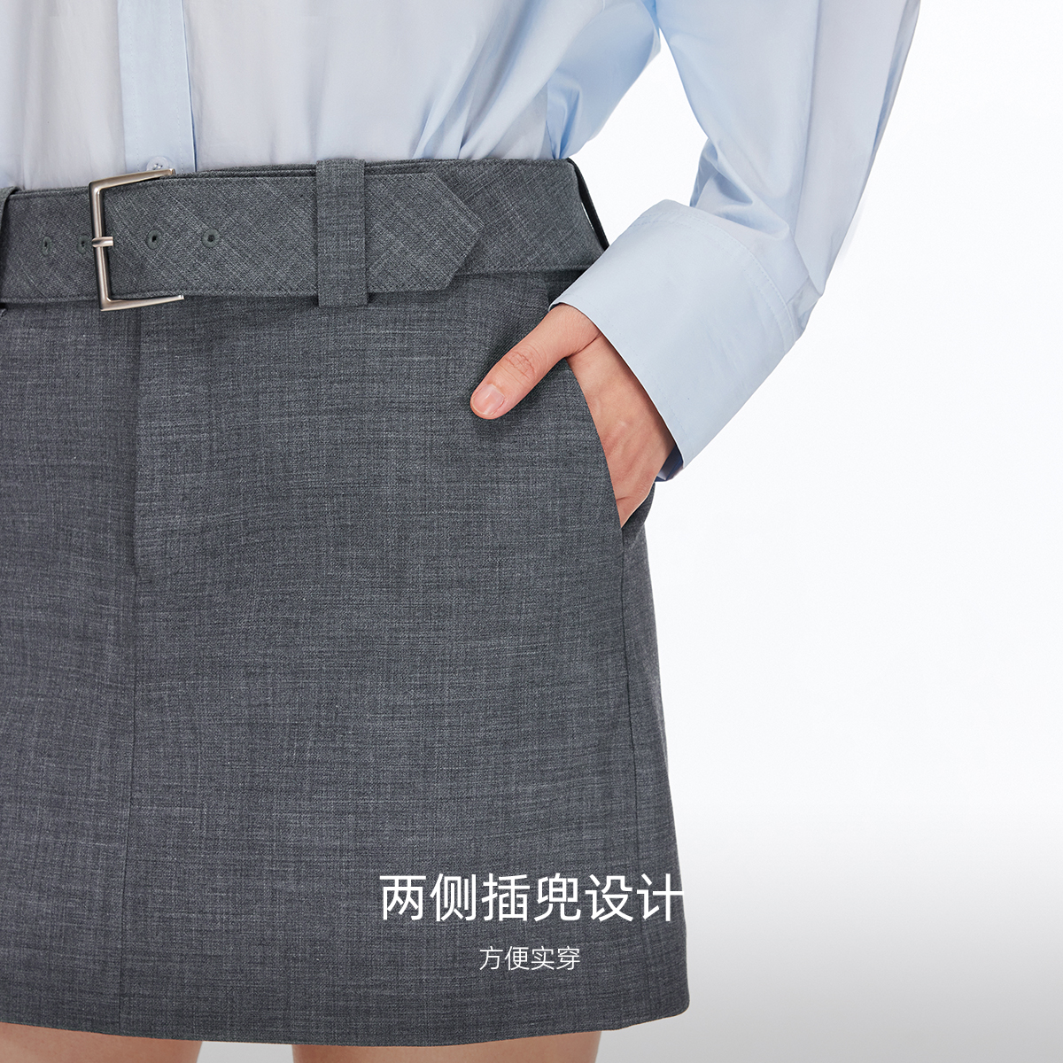 Vero Moda短裙女2025秋季新款纯色宽腰带A字半身裙百搭325315003