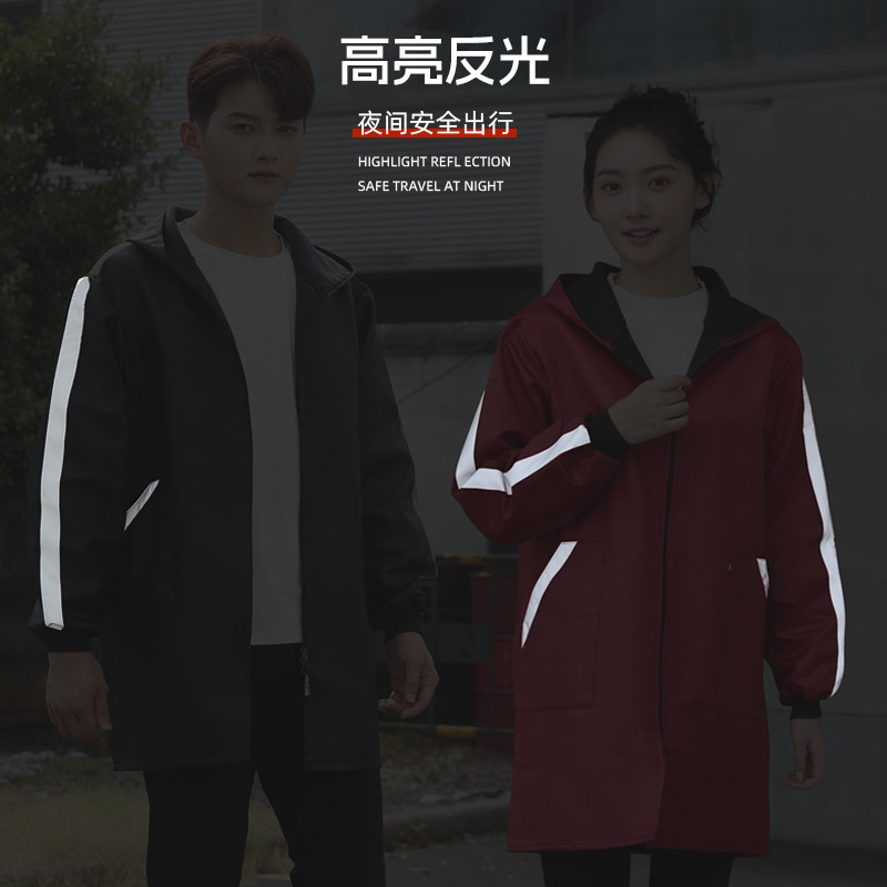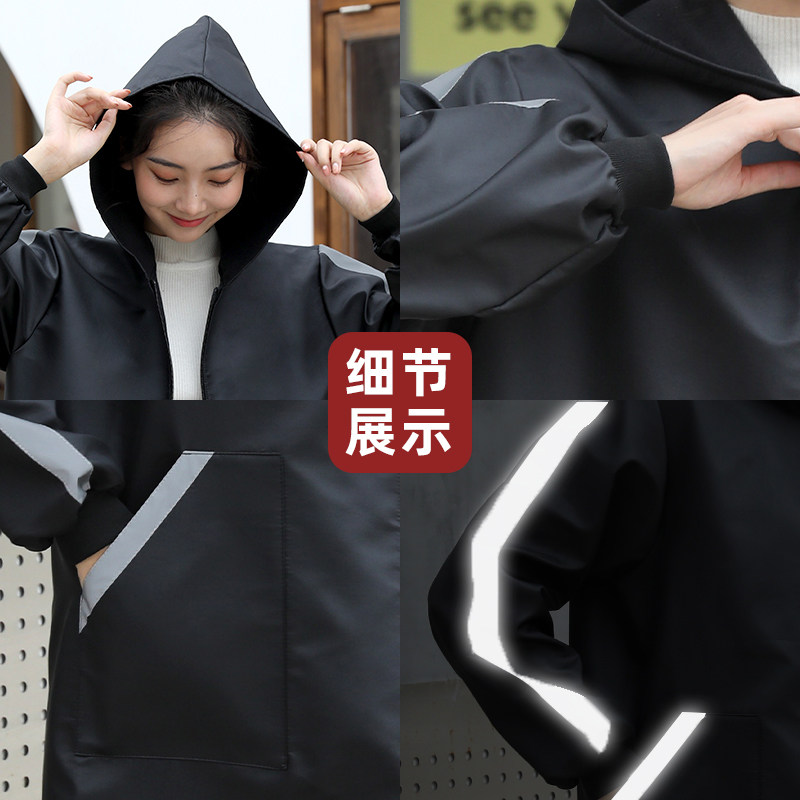 加绒秋冬款长袖围裙时尚反光条设计男女同款连帽罩衣工作服红色