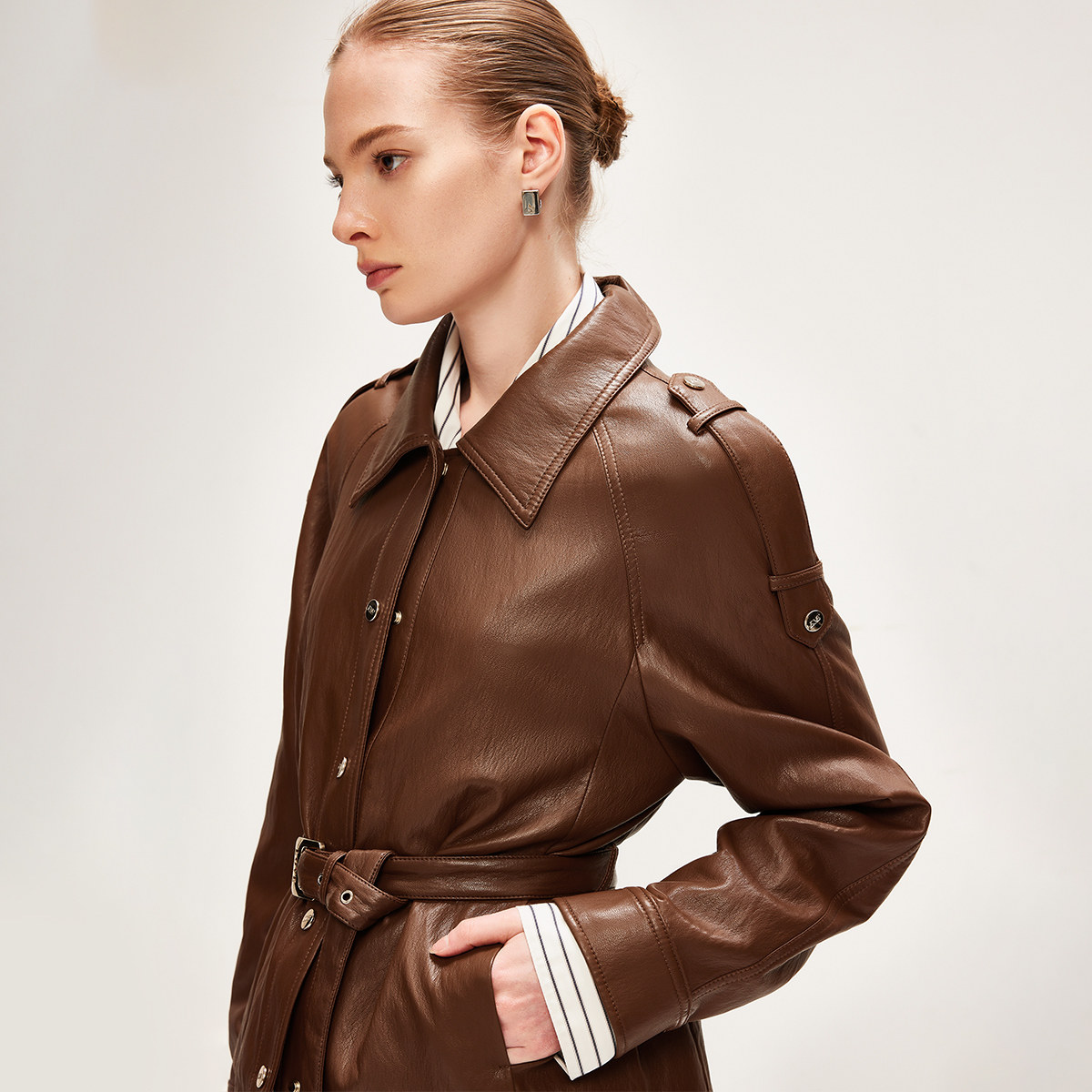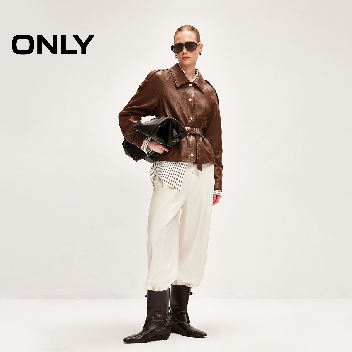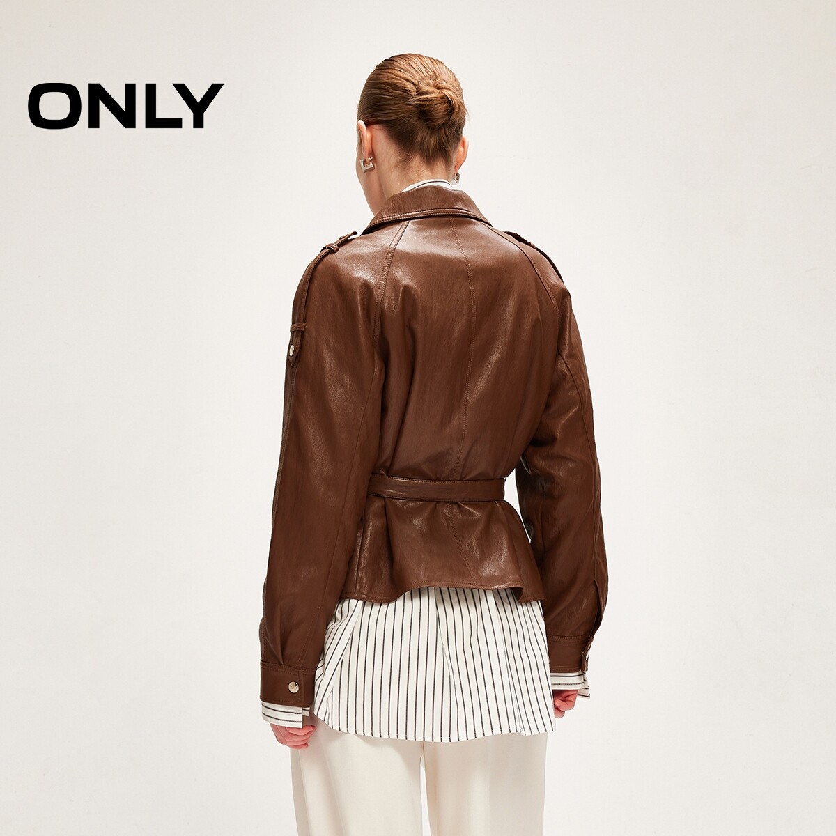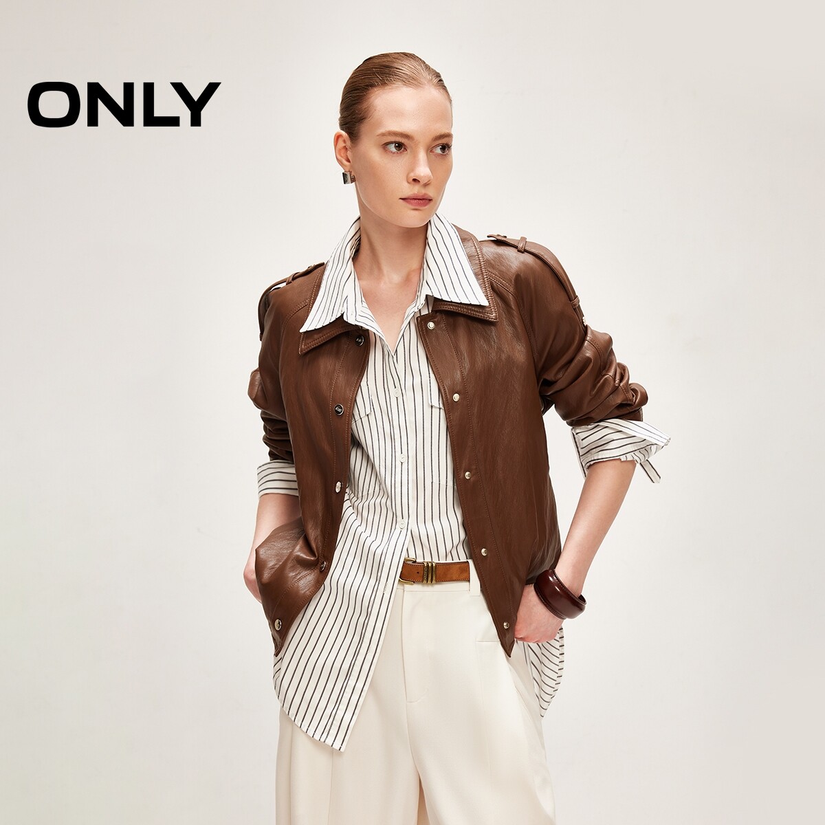 ONLY2026春季新款肩章袢带装饰英伦老钱风插肩袖宽松PU夹克外套女
