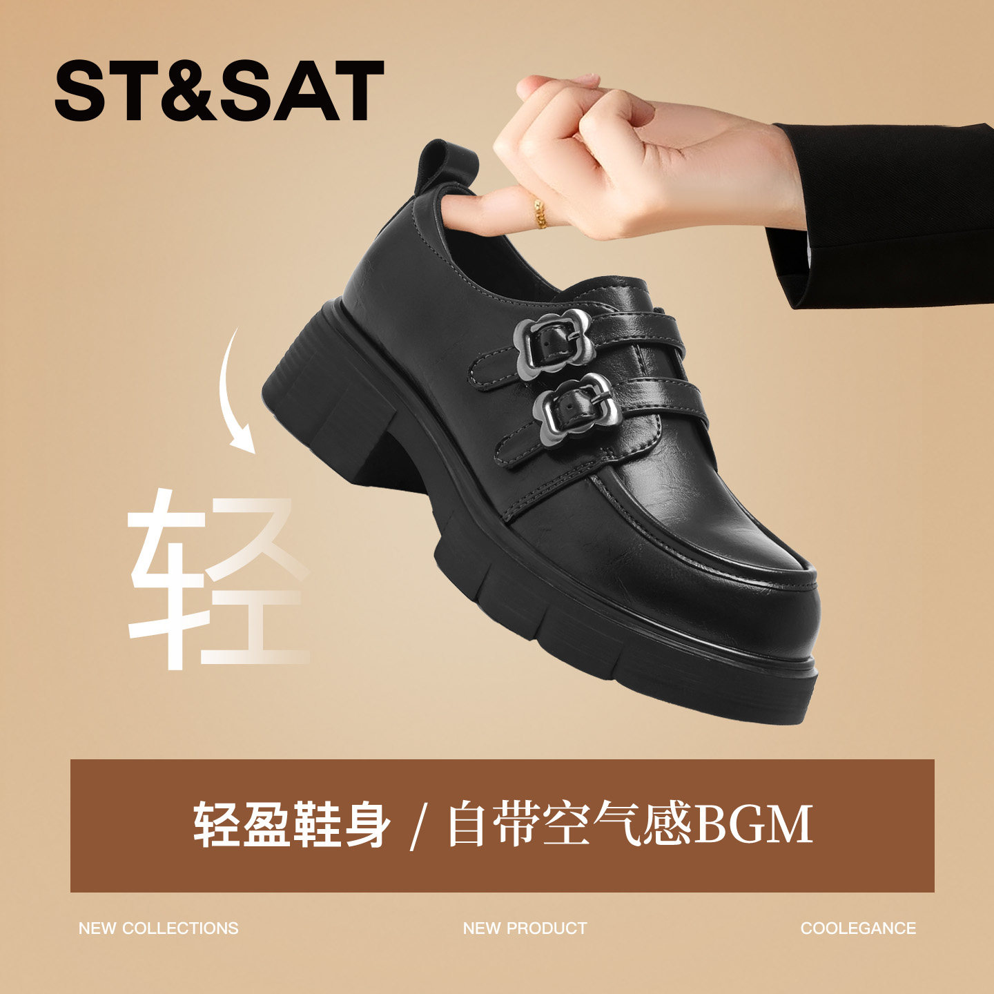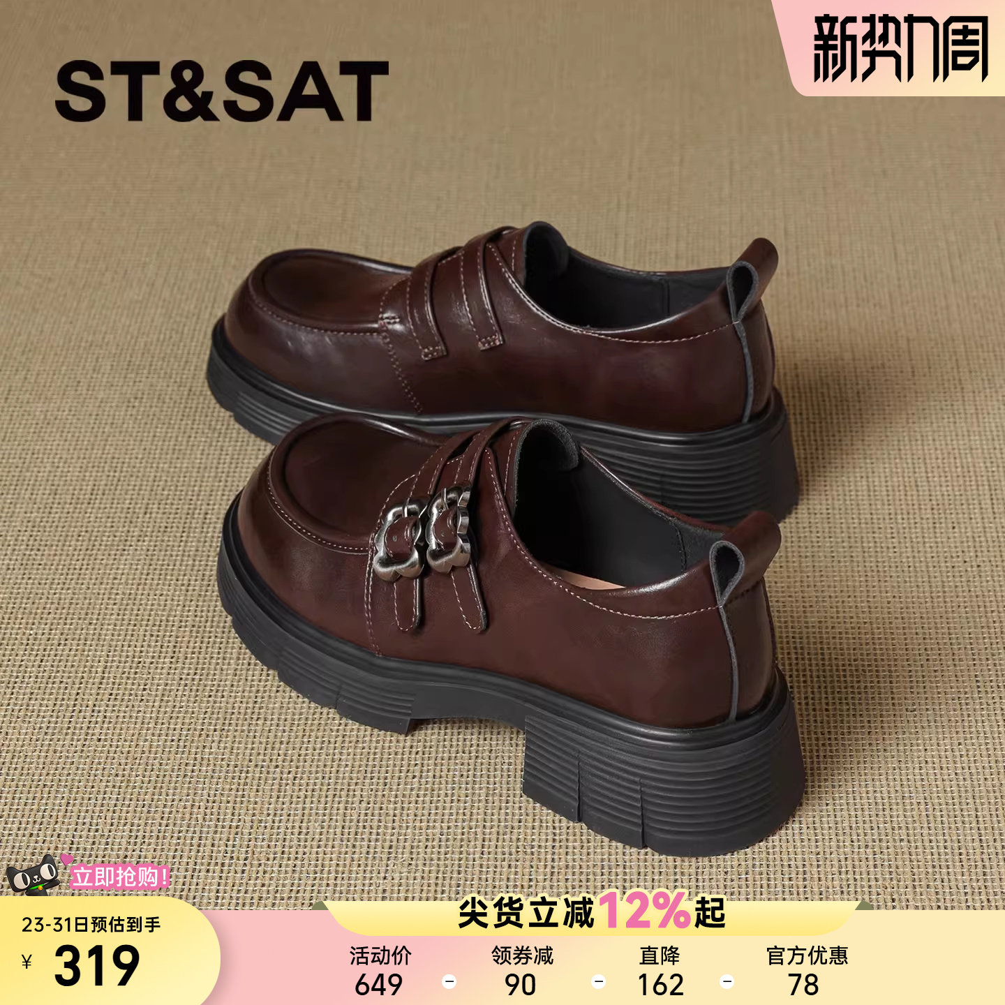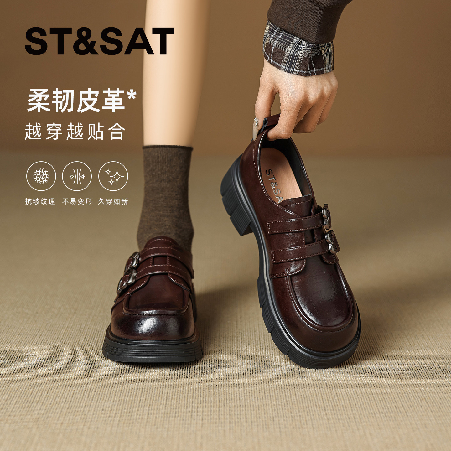 星期六厚底乐福鞋女2026新款春季复古英伦风双扣配裙子通勤小皮鞋