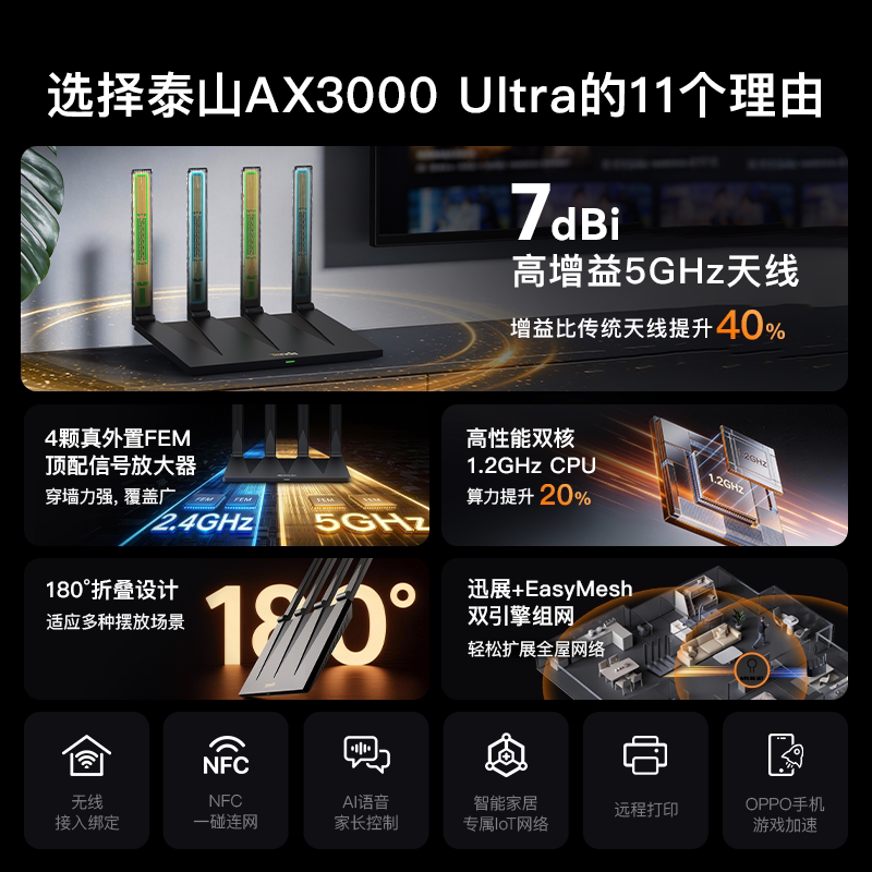 WiFi6+高增益天线稳定穿墙+5G双频