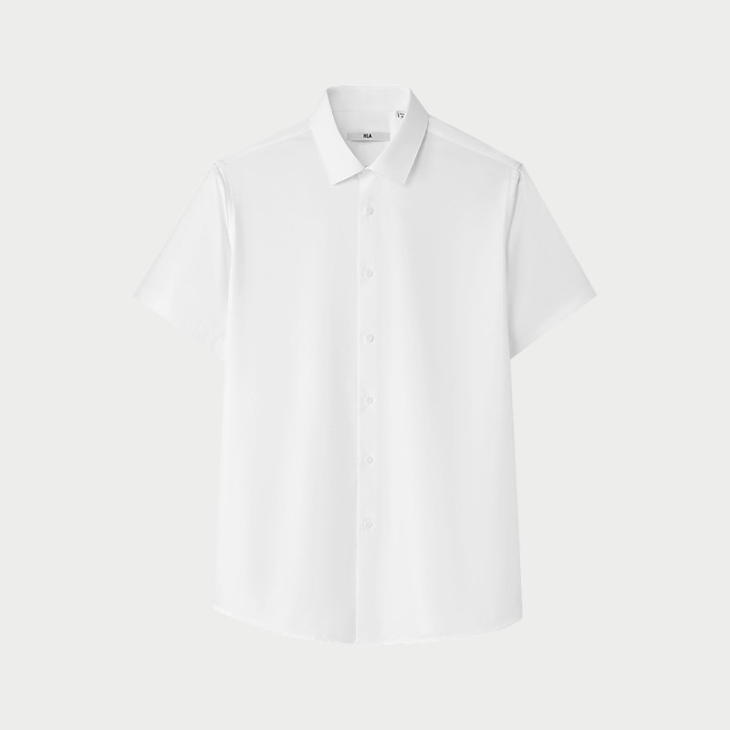 HLA/海澜之家纯色短袖衬衫26春夏新款国民臻品翻领商务正装衬衣男