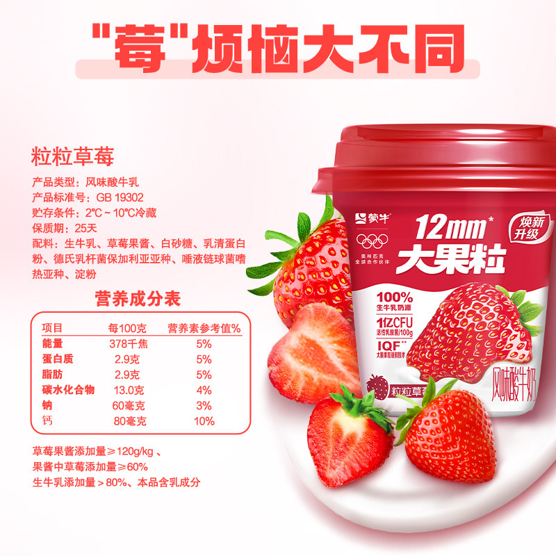 蒙牛大果粒酸奶草莓黄桃蓝莓桑葚酸奶果粒风味生牛乳发酵乳