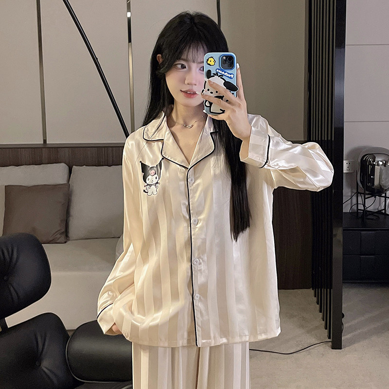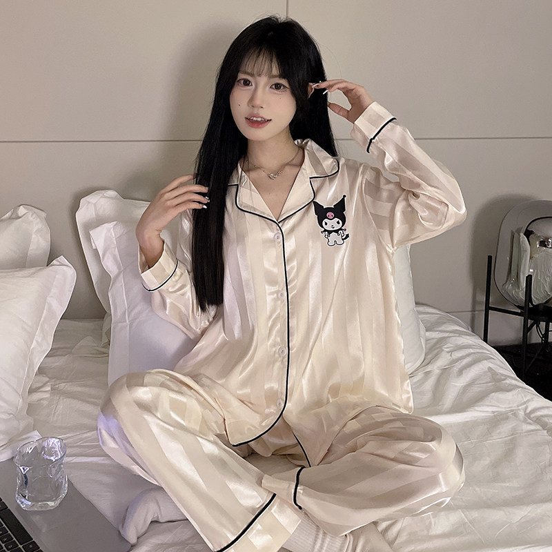 新款冰丝睡衣女春秋季夏天薄款长袖凉感可爱卡通家居服套装可外穿