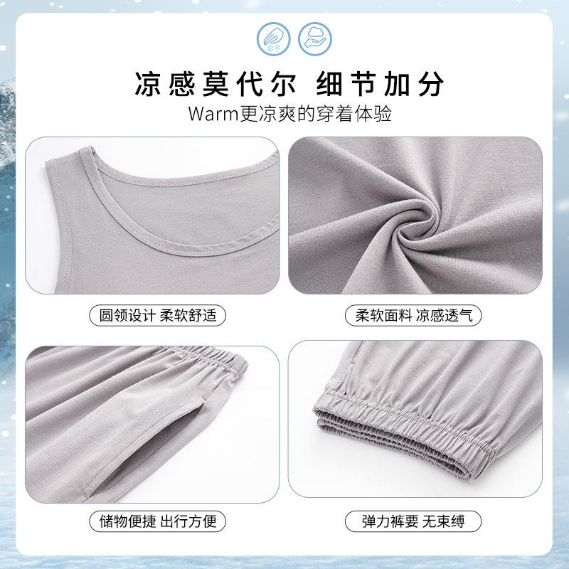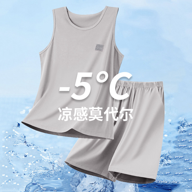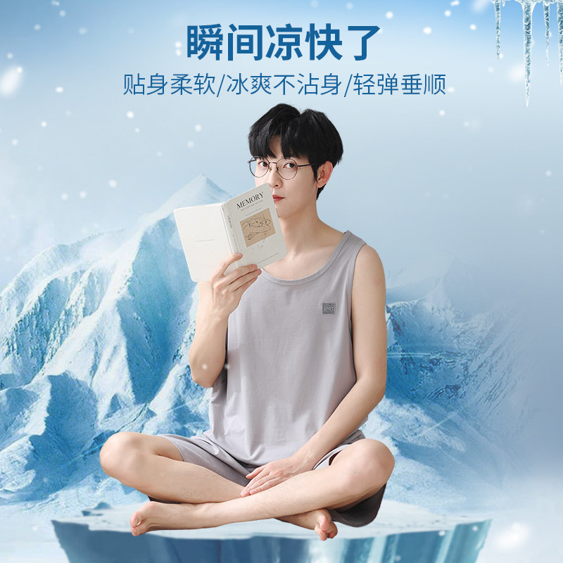 夏季男士睡衣冰丝莫代尔短袖裤背心套装2025新款薄款家居服可外穿