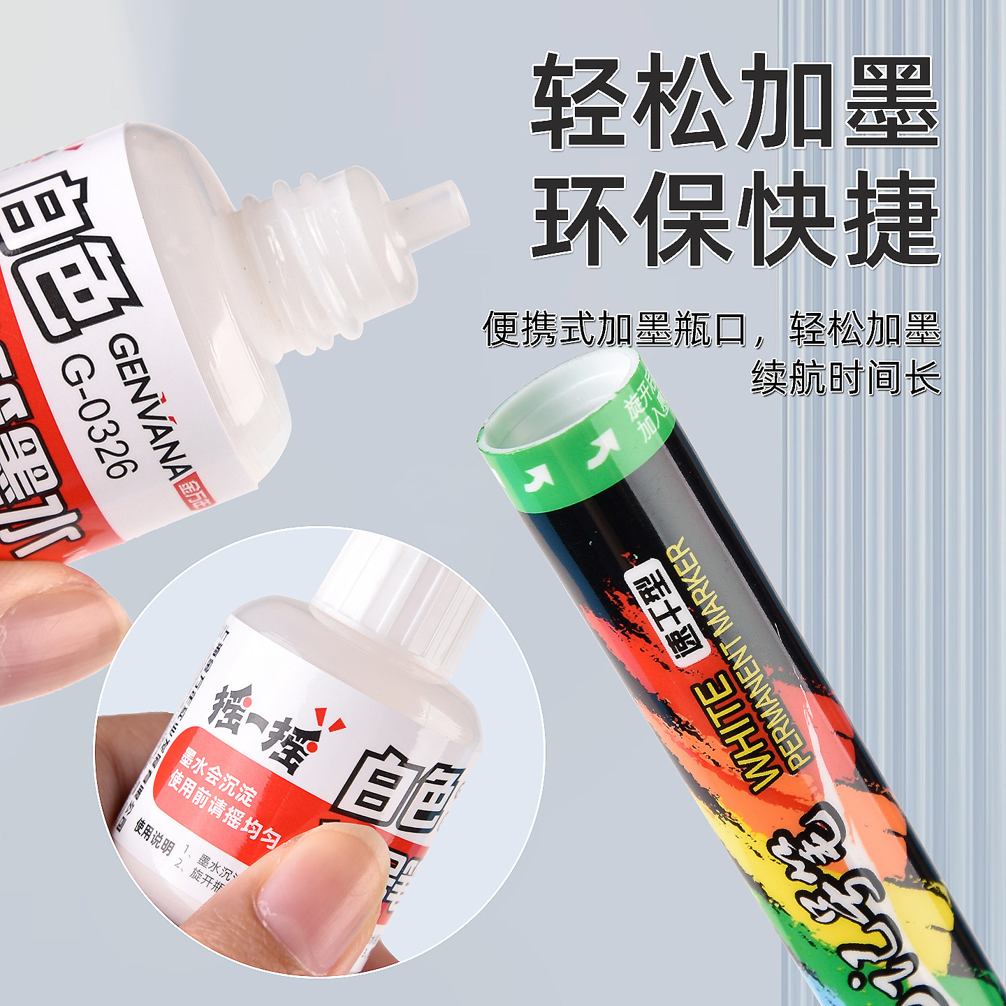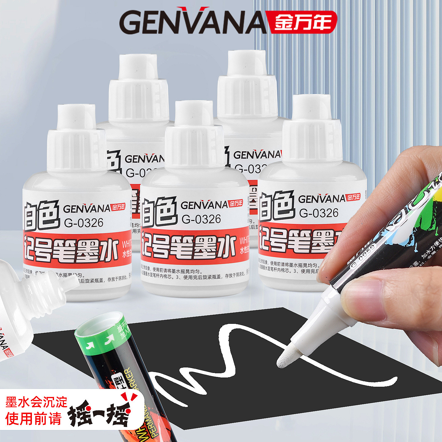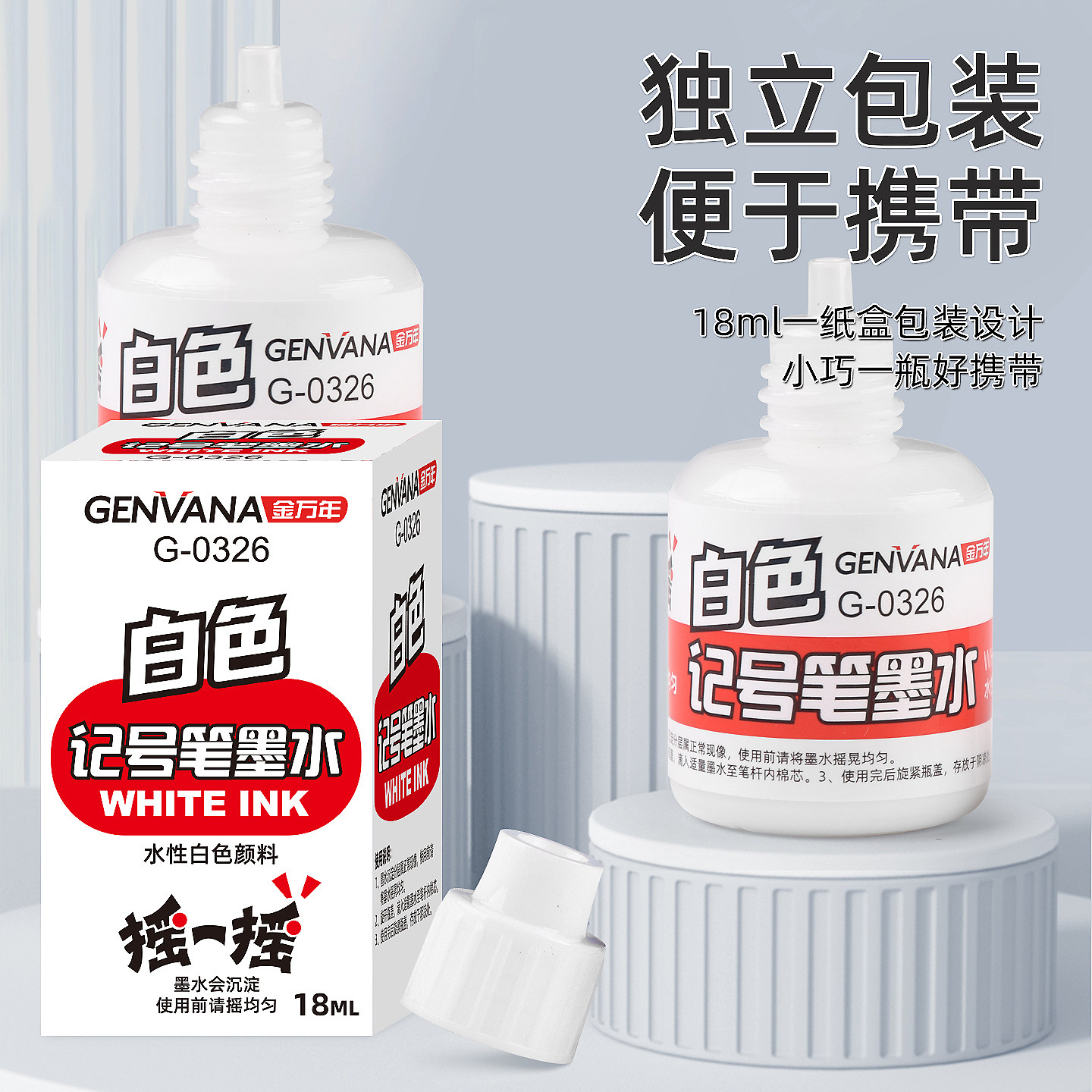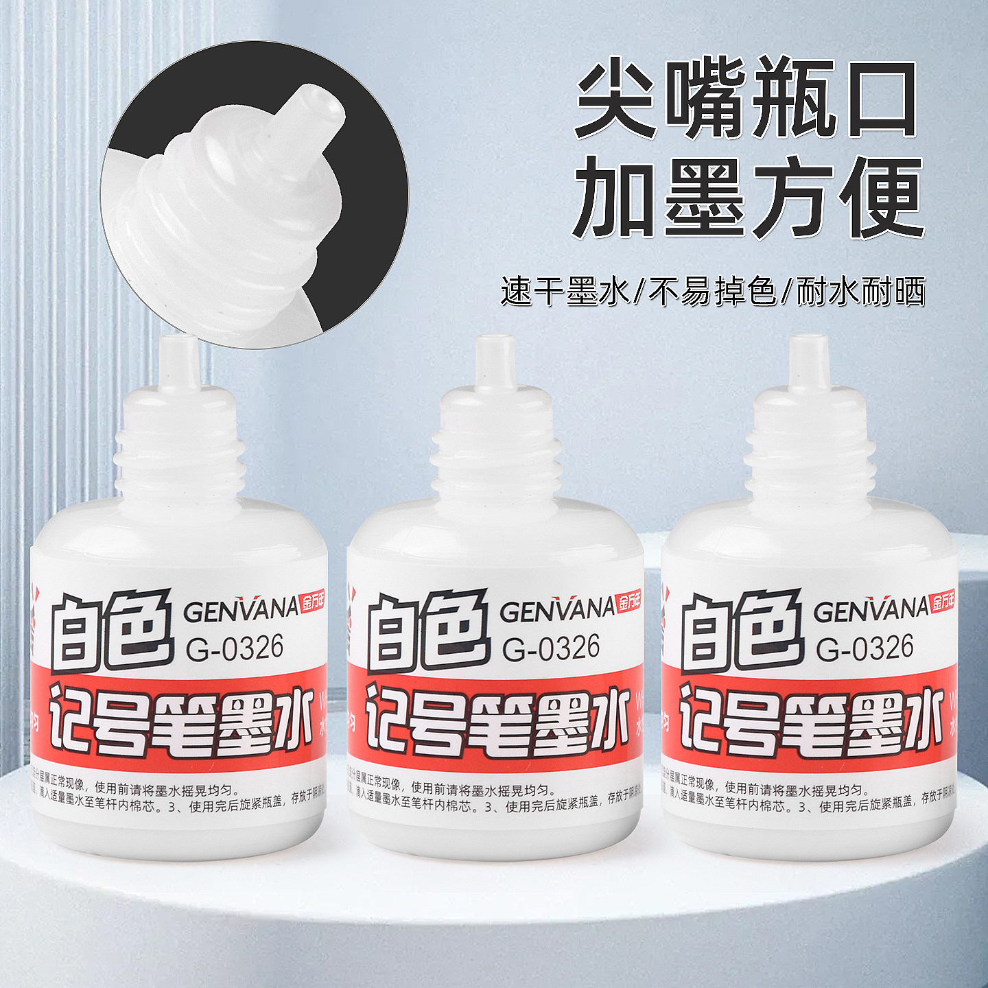 金万年白色记号笔补充墨水大头笔长头记号笔标记笔白色补充液水性白色颜料白色高光笔类补充墨水18ML白墨液