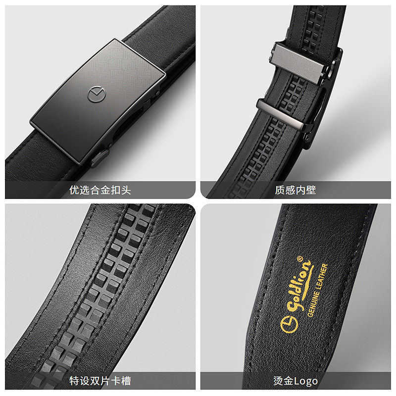 金利来皮具男士新款圆明园暗纹内穿式防指纹商务头层牛皮皮带腰带