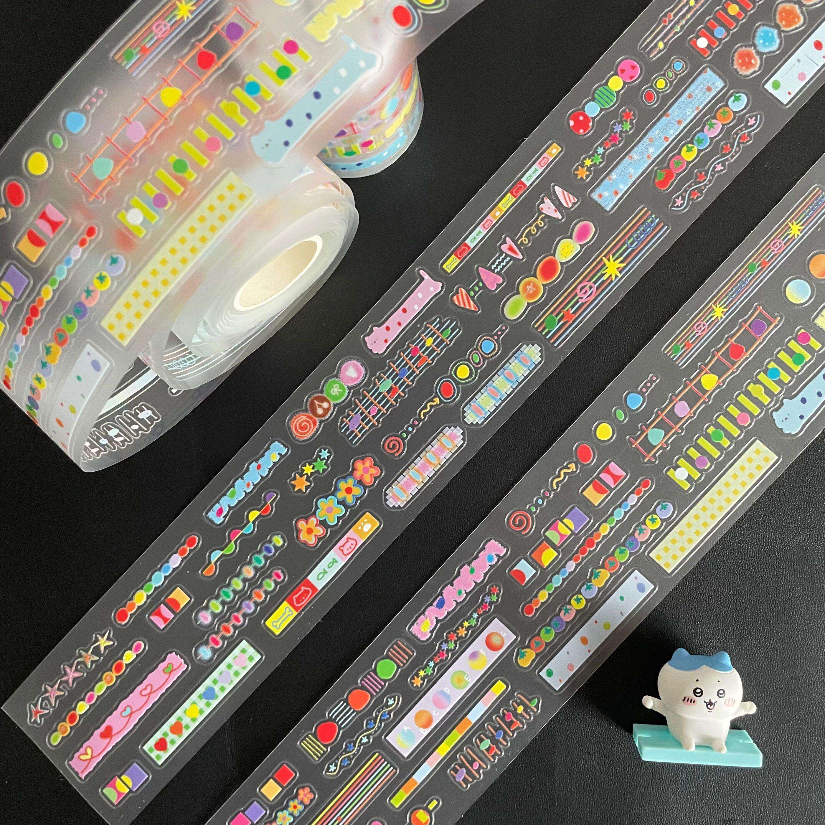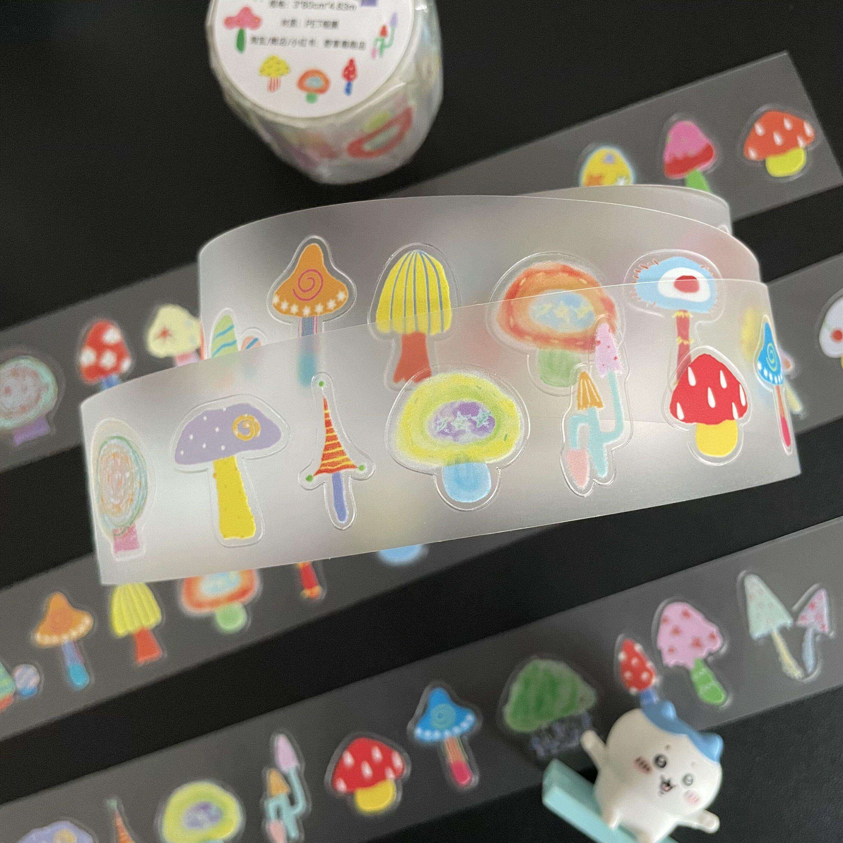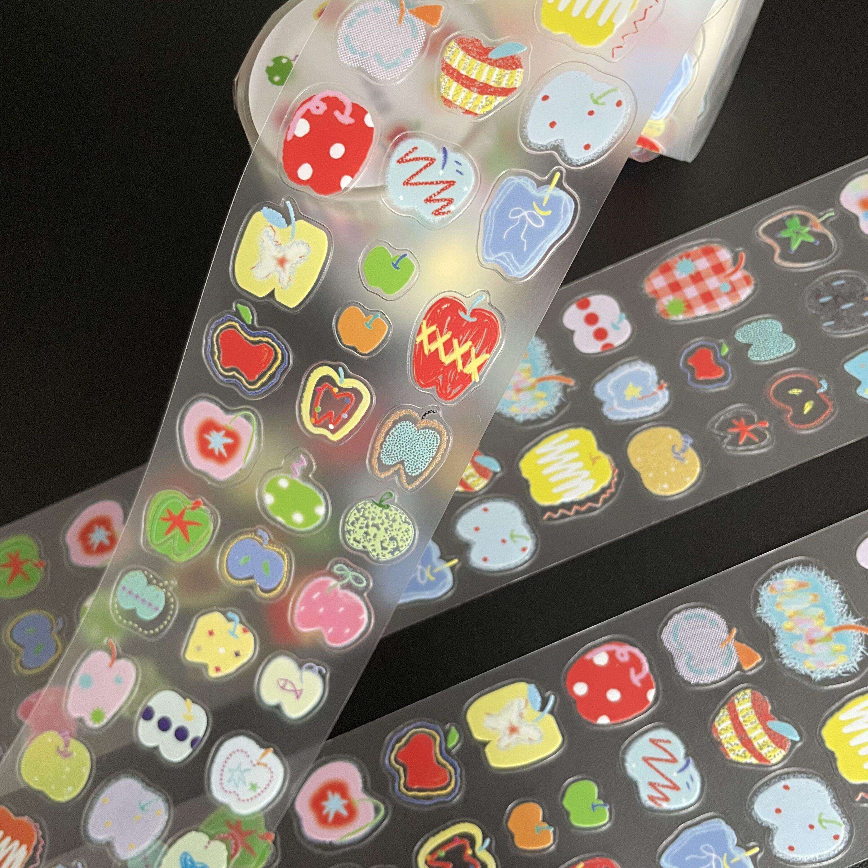 野草莓分装彩色圆点线条分隔苹果蘑菇原创胶带贴纸卷百搭基础手帐