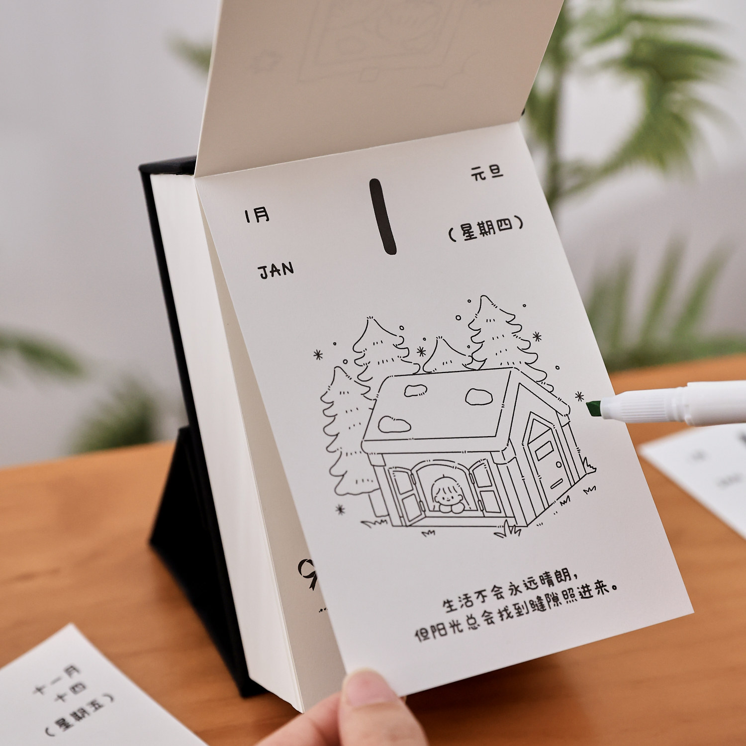 盐岛时光 2026年拾光日记DIY填色日历 治愈解压手撕桌面摆件台历