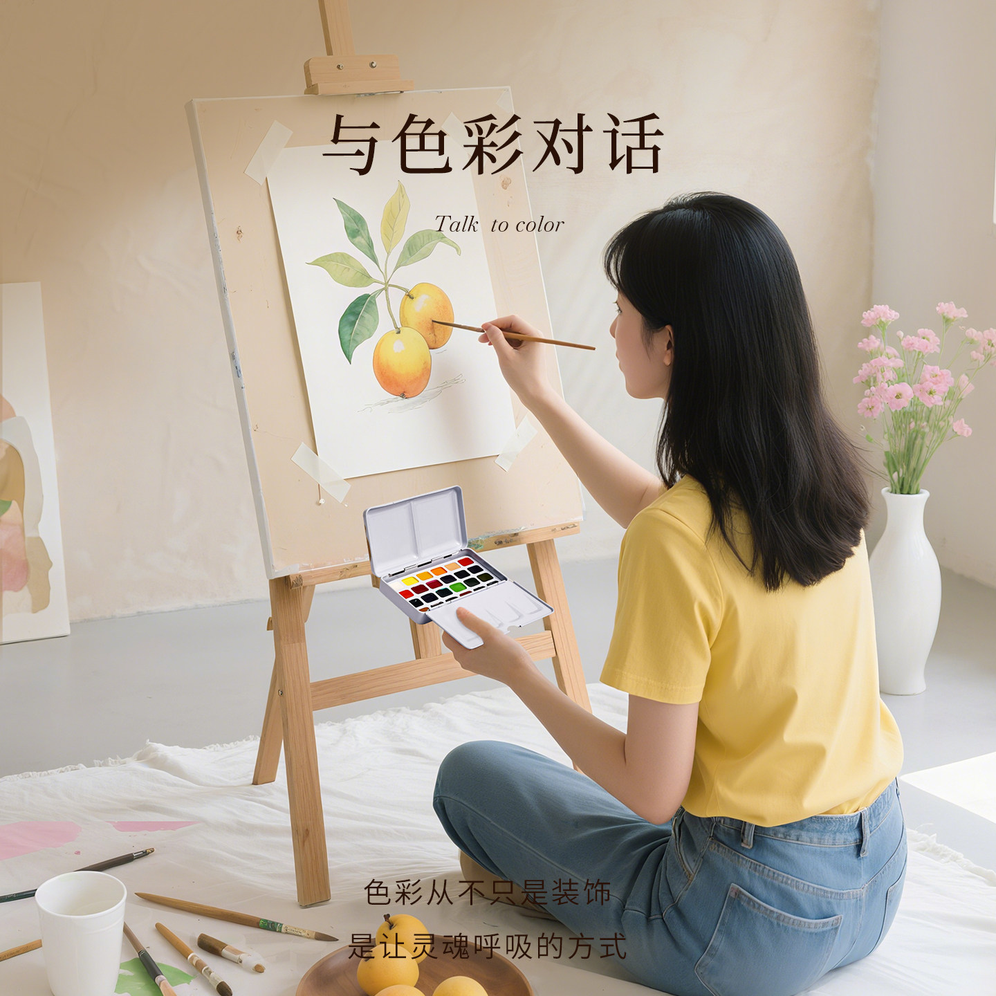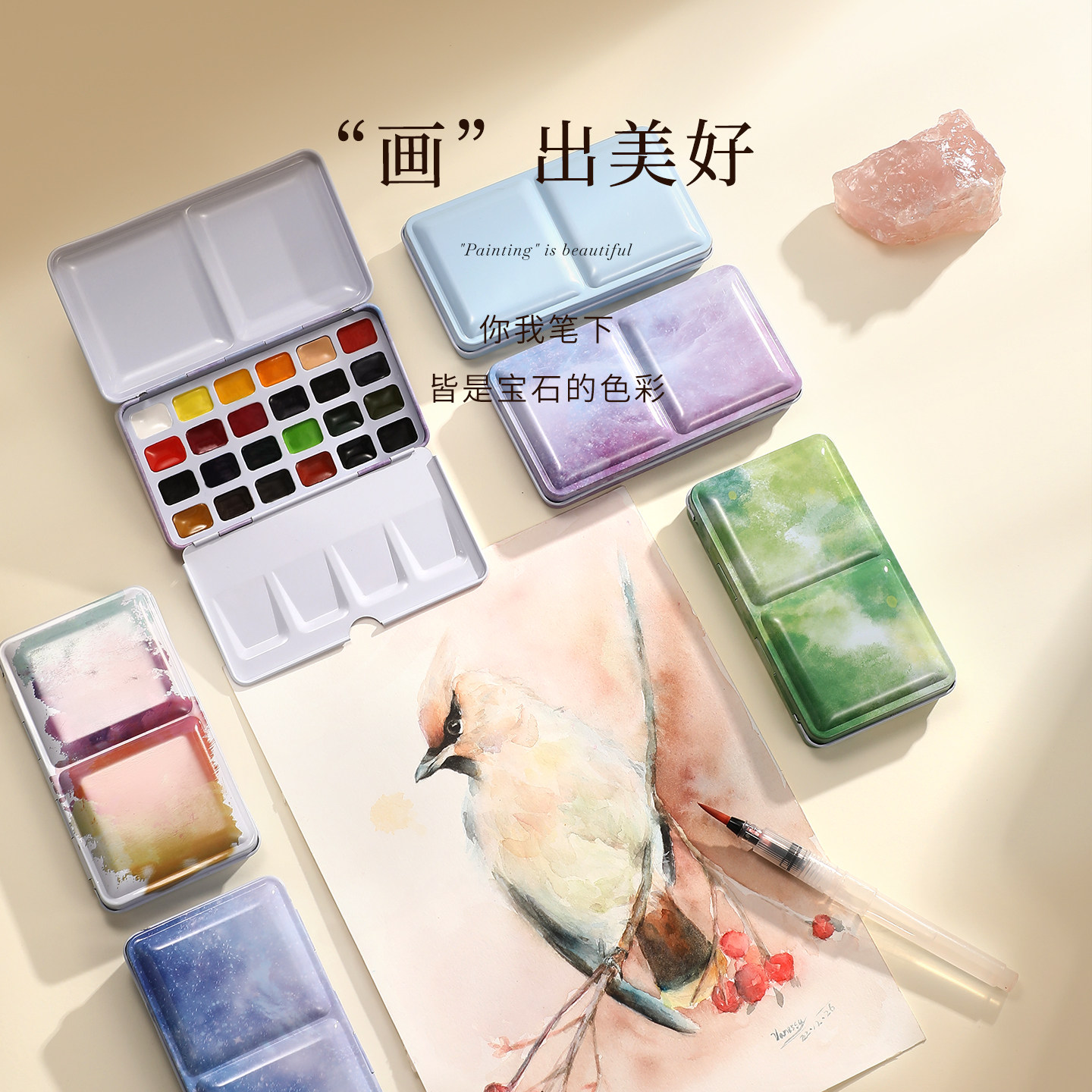 鲁本斯水彩颜料分装宝石艺术家级固体水彩不透明水彩画套装全套儿童初学者24色美术专用便携旅行写生画画工具