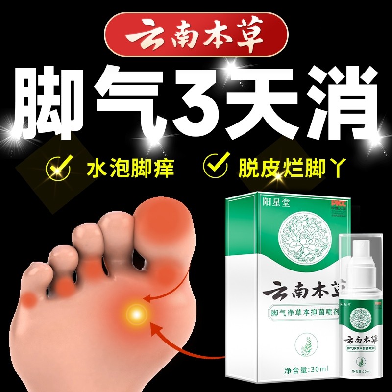 云南本草脚气喷雾止痒烂脚丫药脱皮糜烂脚趾缝烂痒真菌感染脚气膏
