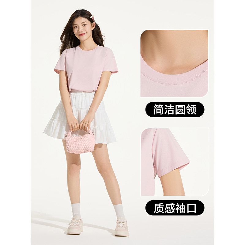 大洪官方轻氧T高级休闲简约显瘦圆领短袖T恤时尚宽松气质纯色上衣