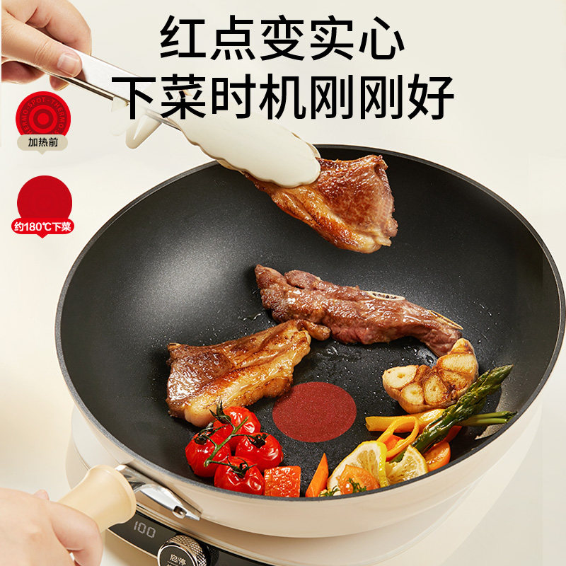 爱仕达无氟涂层不粘锅炒锅家用陶瓷不沾锅燃气电磁炉用钛锅炒菜锅