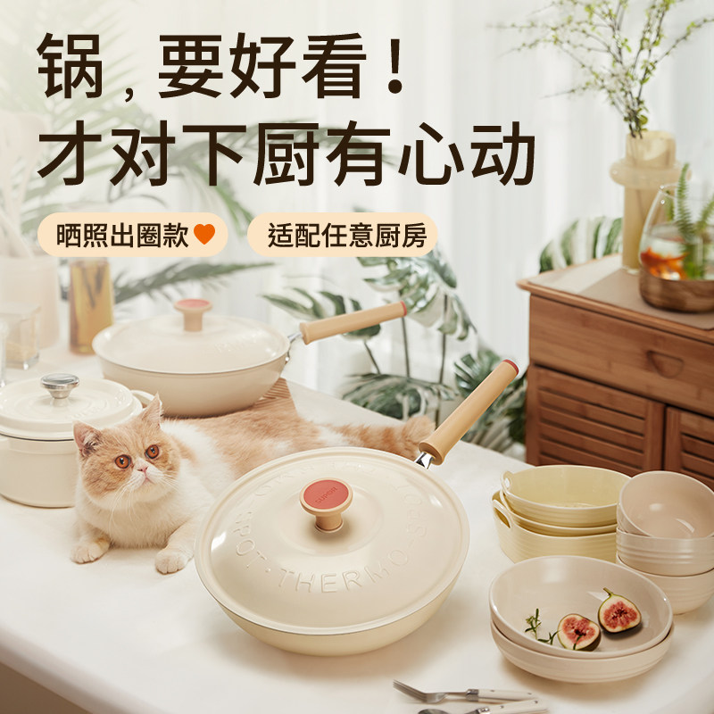 九阳陶瓷不粘锅钛锅家用平底炒锅电磁炉专用炒菜锅官方旗舰正品炊
