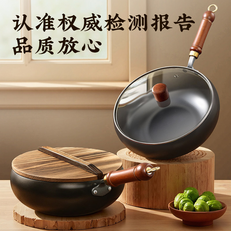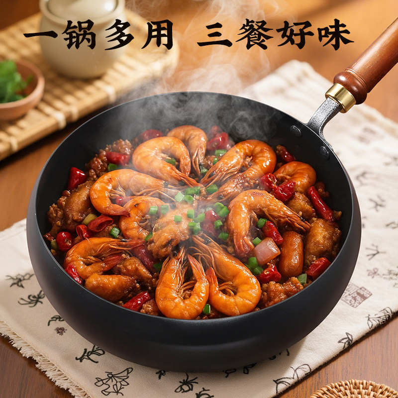 铁锅官方旗舰炒菜锅老式炒锅铁锅家用不粘锅无涂层燃气灶适用