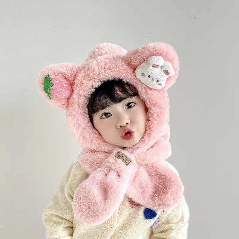 尼多熊儿童帽子围巾一体冬季防风帽宝宝毛绒护耳帽女童加厚保暖帽