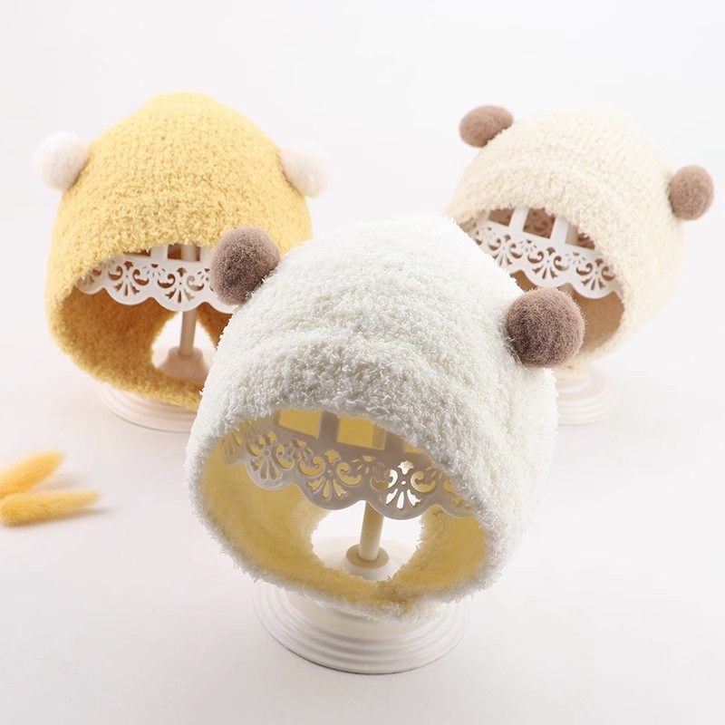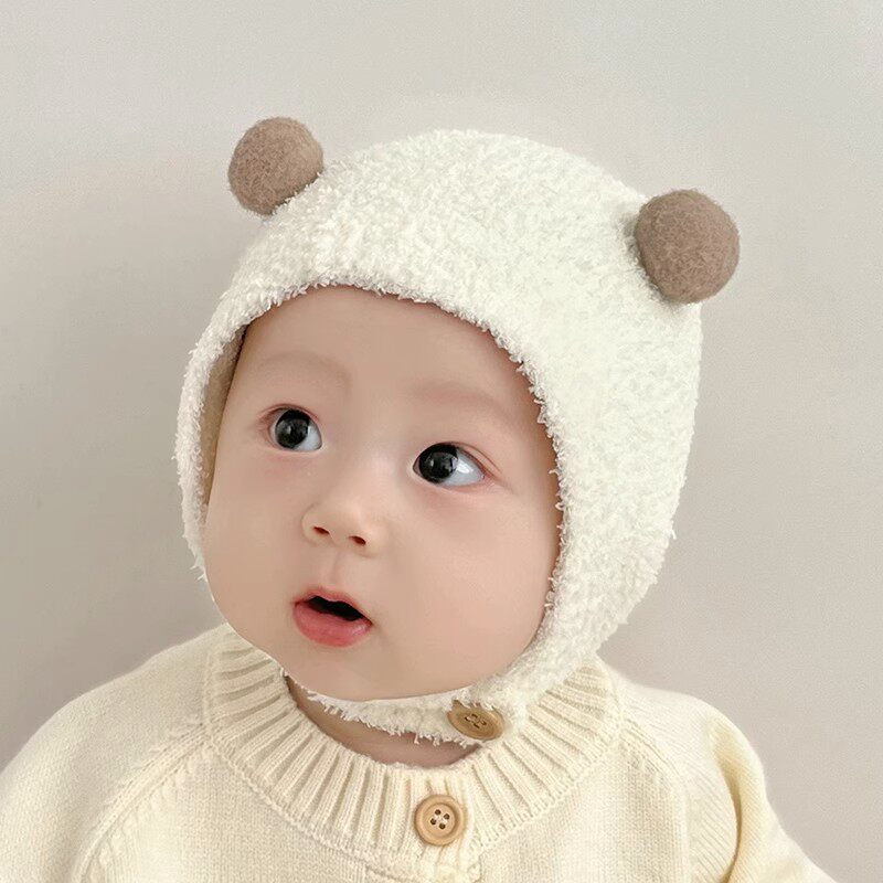 尼多熊婴儿帽子秋围脖一体宝宝毛绒帽防风护耳帽冬季保暖婴幼儿帽