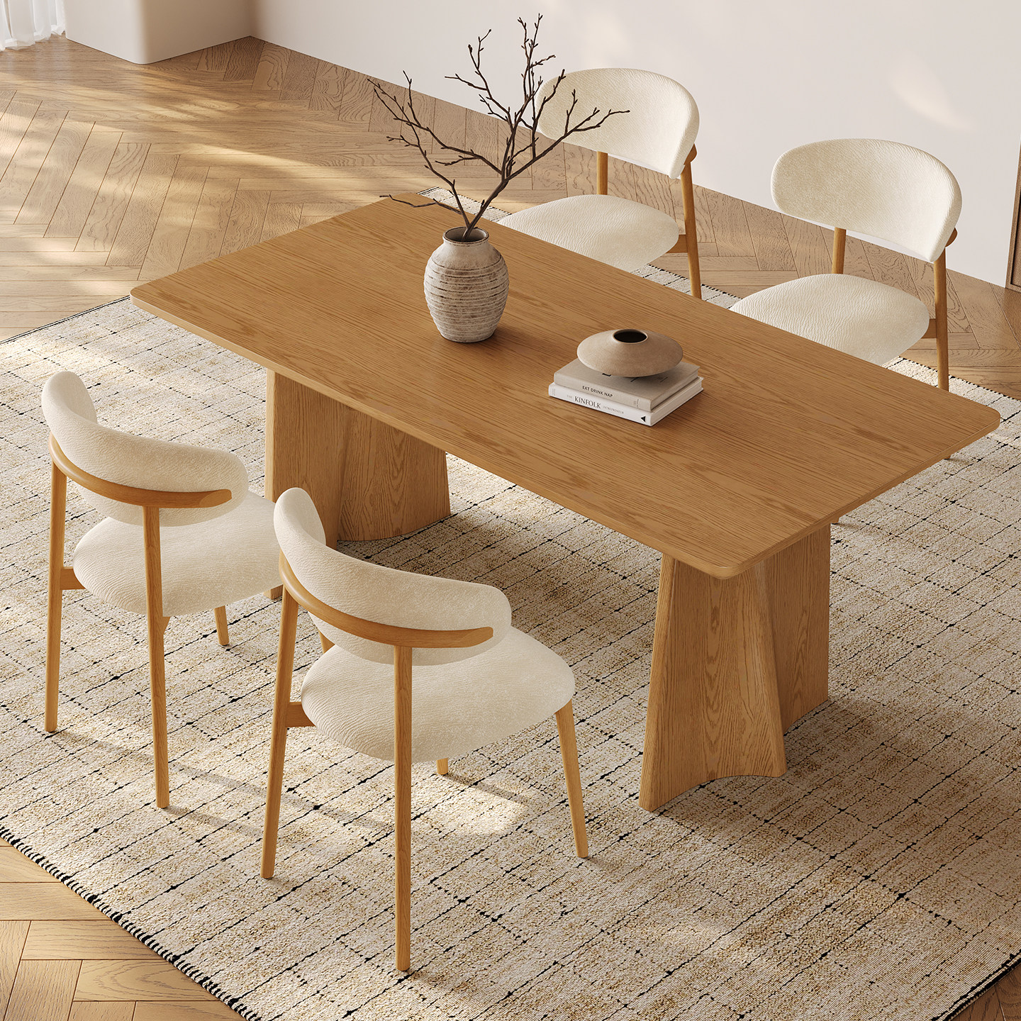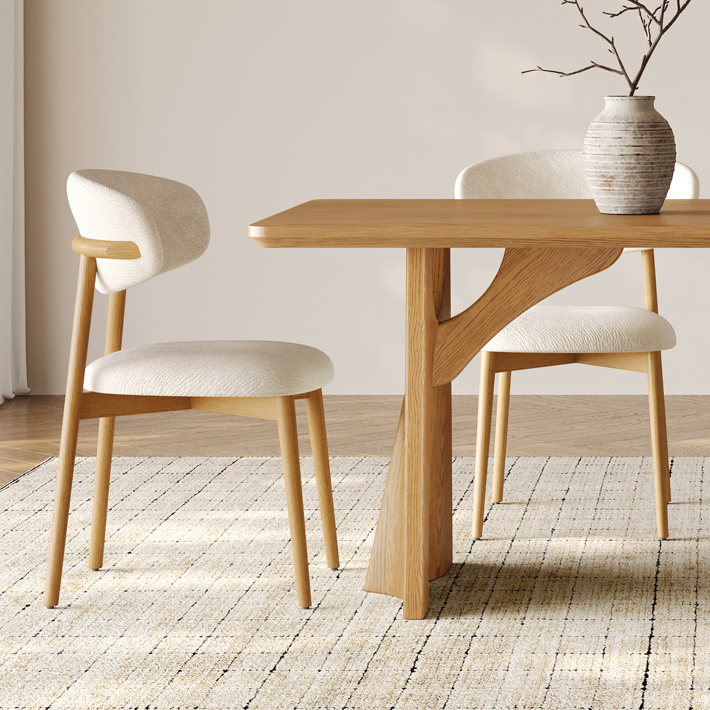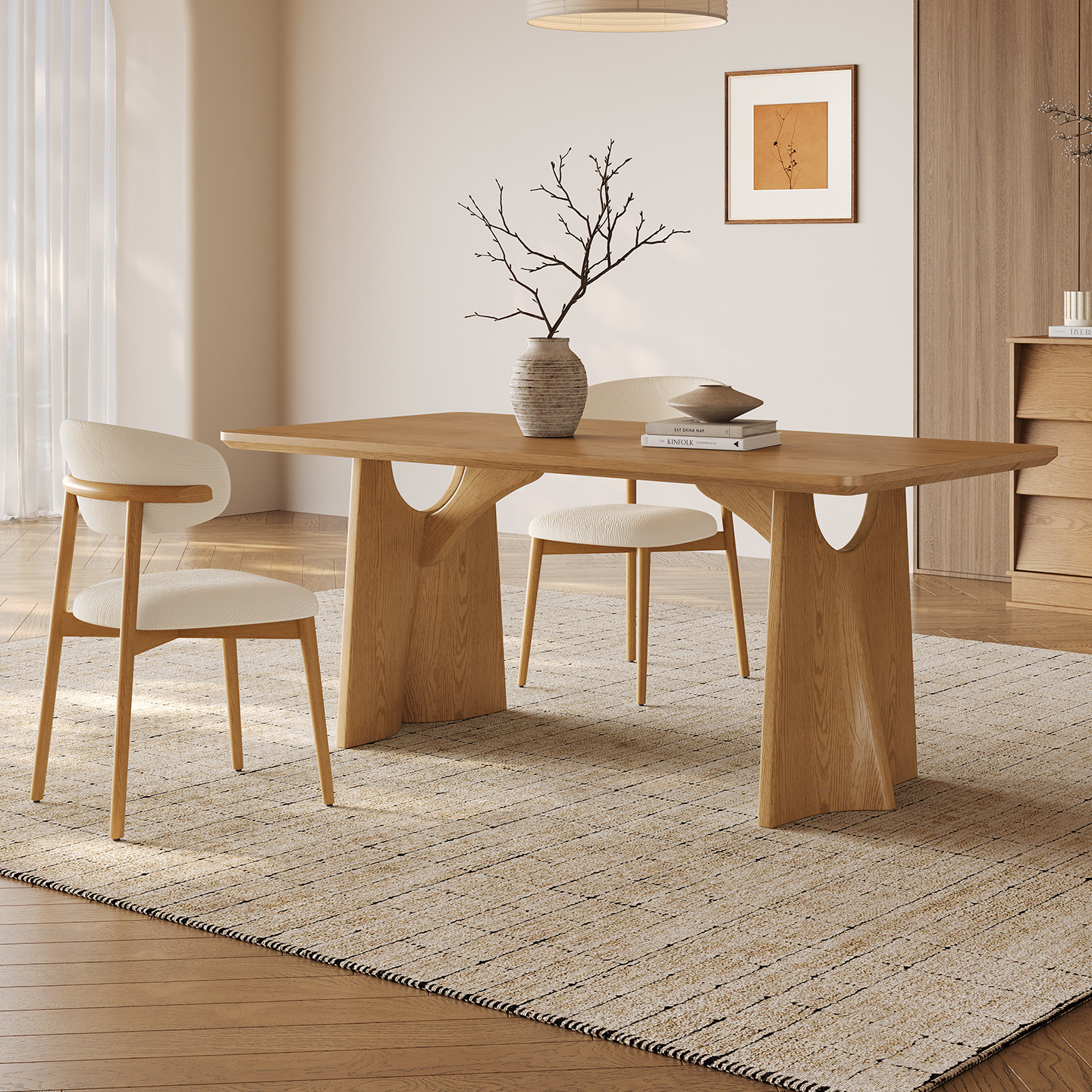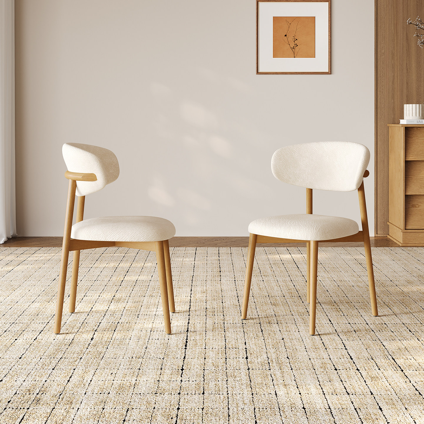 原木奶油风餐椅家用休闲现代简约椅子人体工学靠背椅北欧实木餐椅