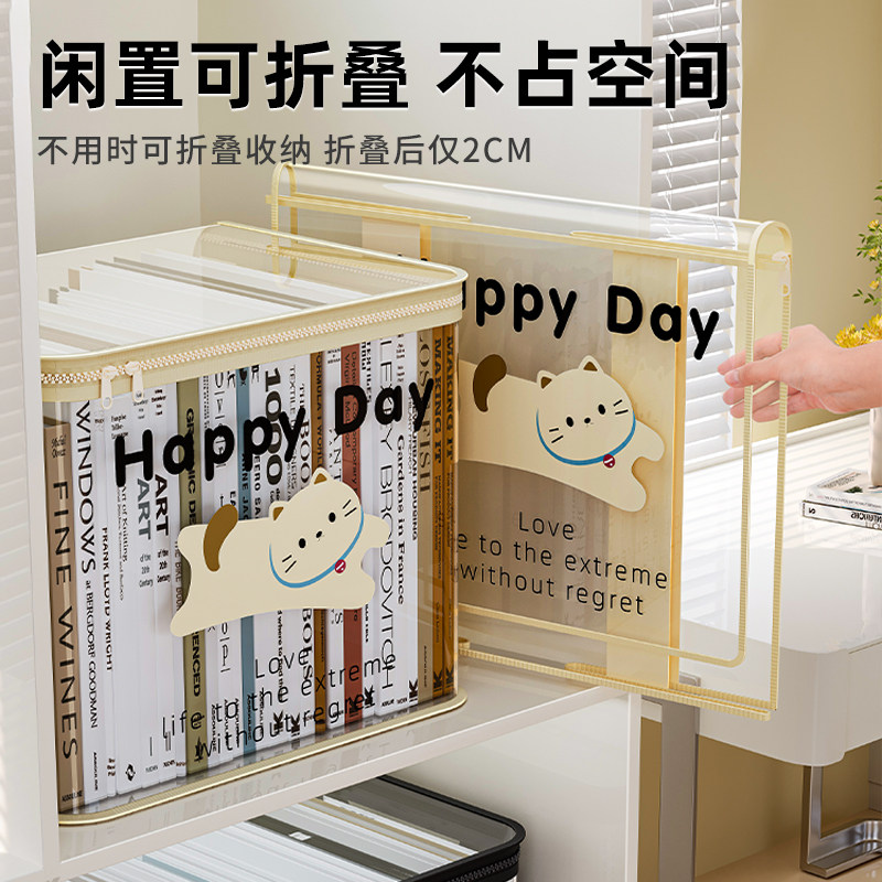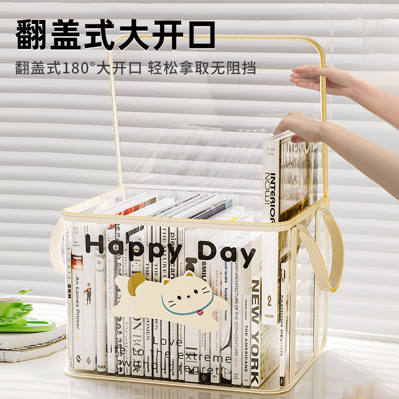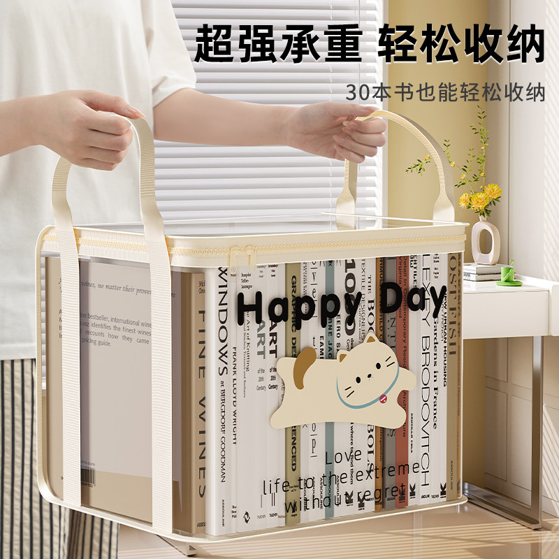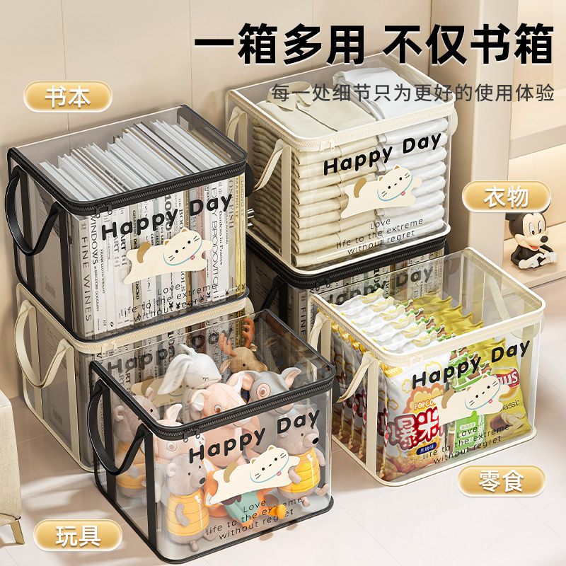 书本收纳箱学生教室家用防尘透明可折叠书箱袋桌面旧书籍整理神器