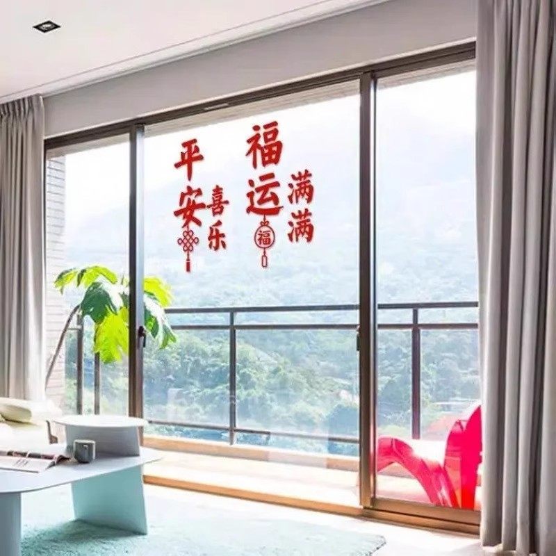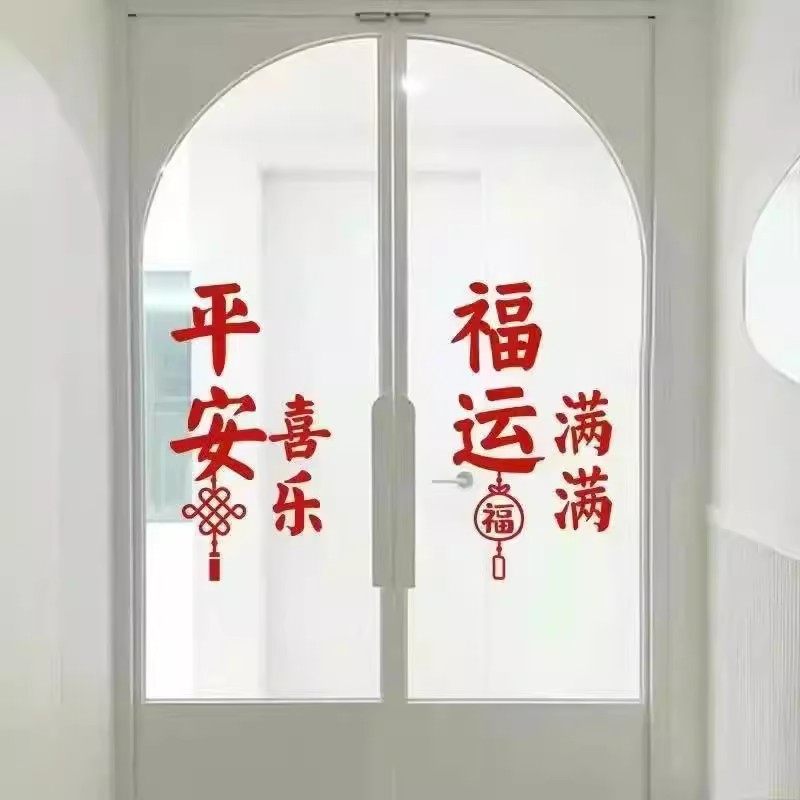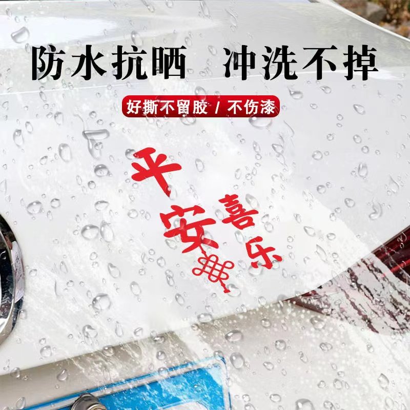 平安喜乐车贴贴纸客厅房间门贴防水贴纸窗花过年中国风文字装饰贴