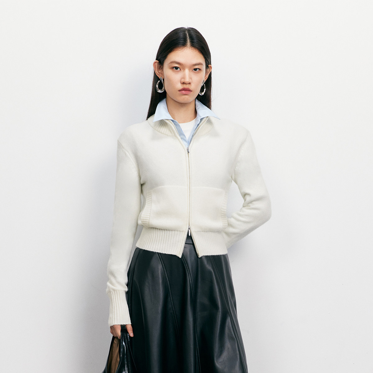 一三良品小个子 高领毛衣秋冬外穿新款百搭宽松拉链针织开衫外套