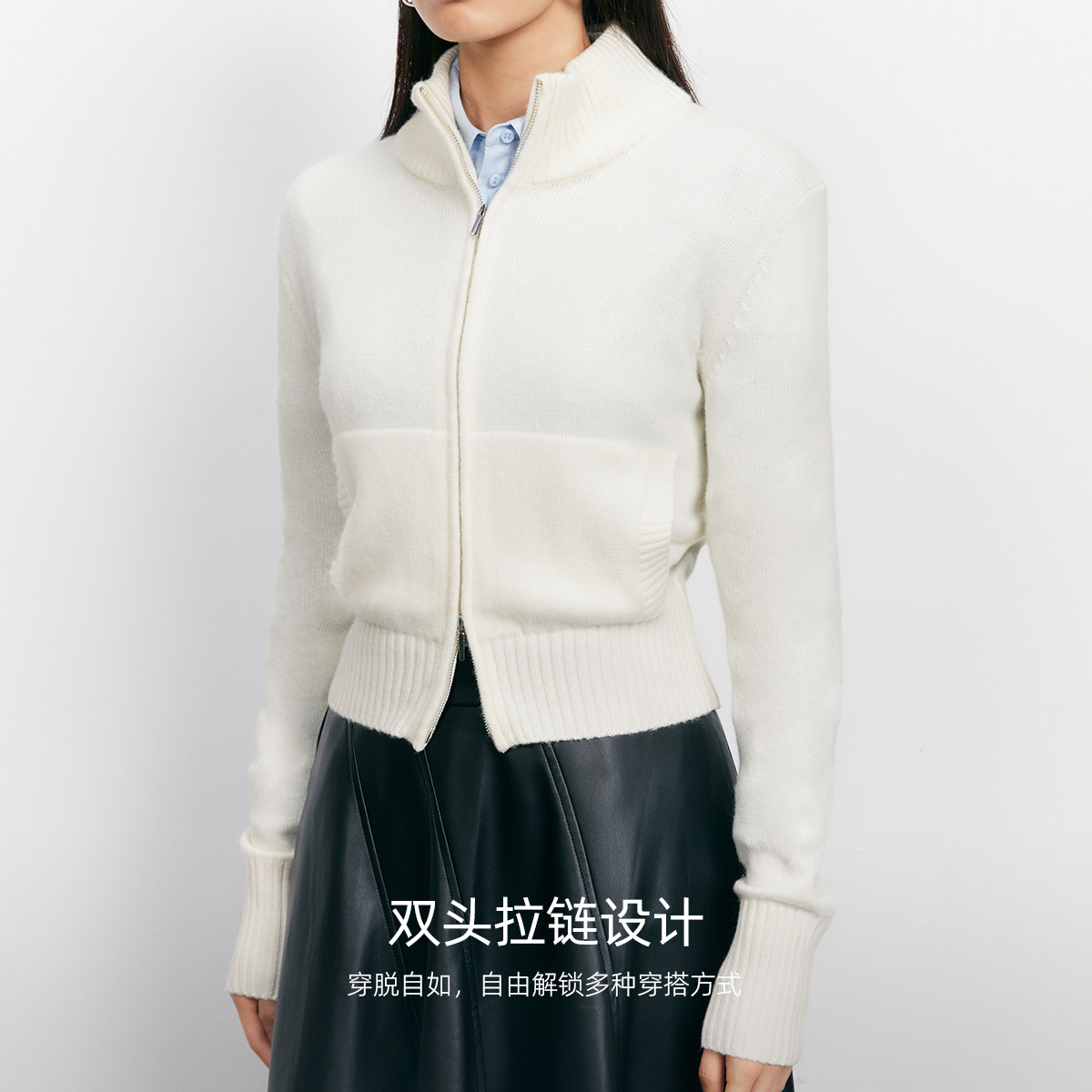 Vero Moda毛衣2025秋季新款含绵羊毛双拉链高领开衫上衣325324033