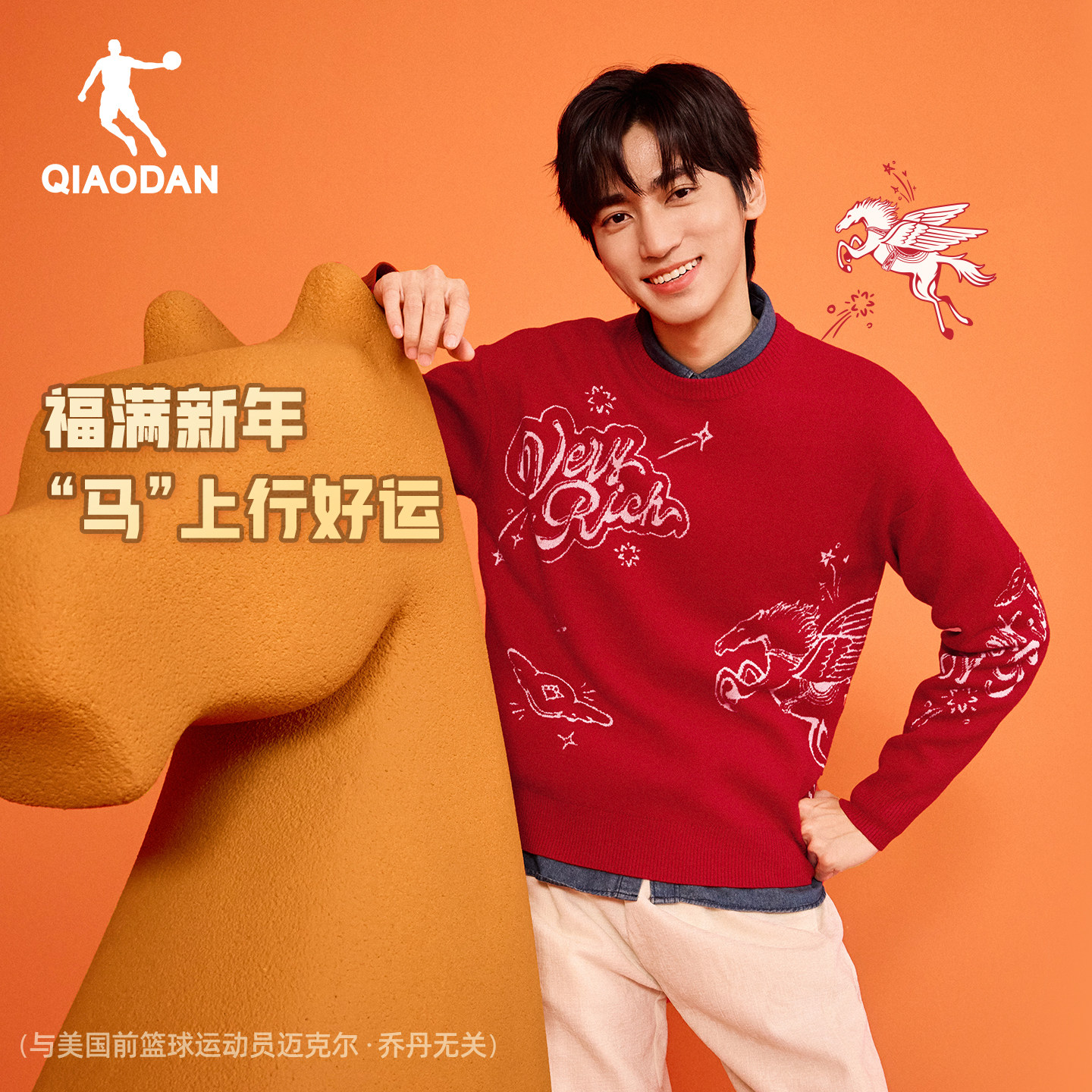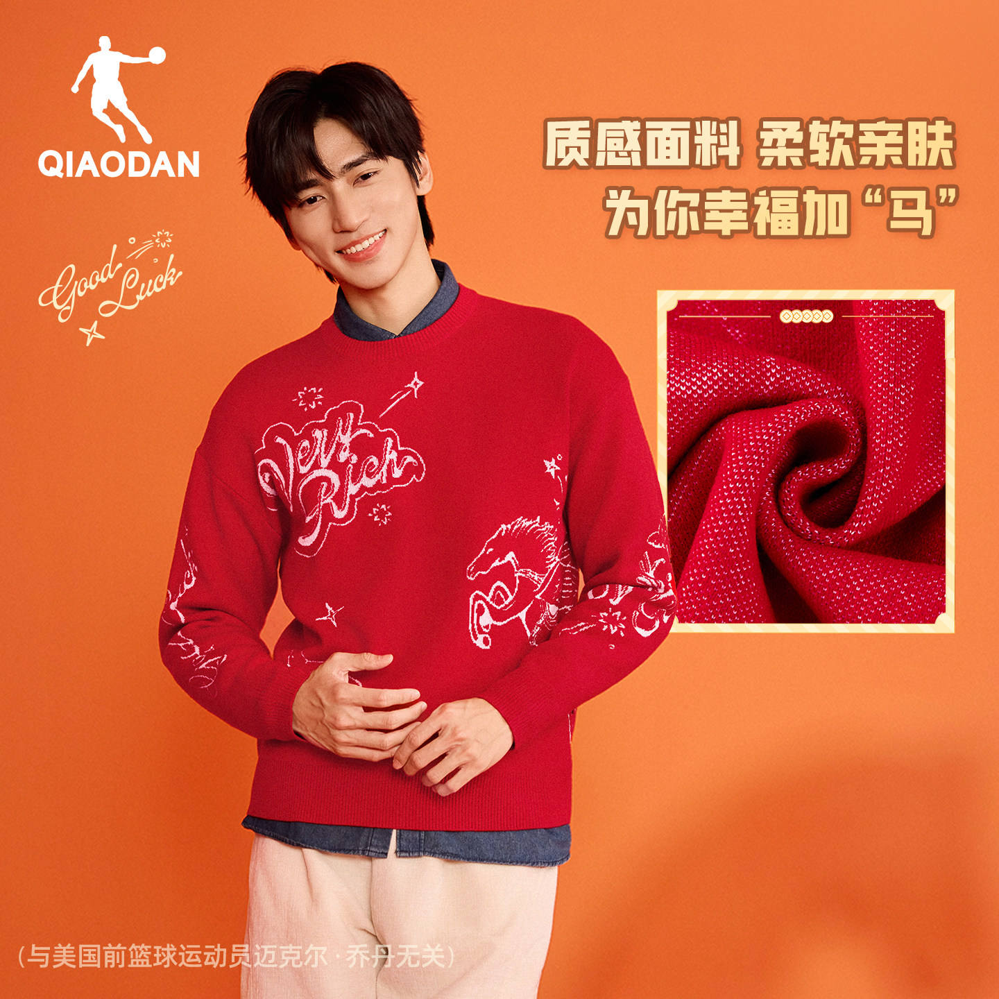 乔丹红色毛衣男生本命年2026春季新款马上有钱新年情侣款提花毛衫